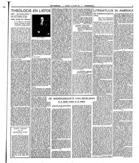 Eén ding immers is zeker: Ritter kent het theologisch milieu door en door; menige passage, ook in dit boek, getuigt ervan. Hij kent de nuances van het protestantisme, zooals zich dat in Nederland heeft ontwikkeld; hij kent ook de atmosfeer van gevangenschap en stille haat achter vitrages en horretjes, die voor een bepaalde soort uitwendige vroomheid representatief is. Een van de beste stukken van den roman is de ‘afrekening’ tusschen Louise en haar oude tante, die haar opgevoed heeft om zich te wreken, in een langdurige, vroom-gecamoufleerde oefening, op den vader, die haar ontrouw werd. Fragmentarisch is er meer, dat boeit, maar het laat niet den indruk van een verantwoord geheel achter, zooals Kain en Abel. Daarvoor is er veel te veel ‘getrokken’, verlengd, herkauwd; daarvoor ook verdrinkt het eigenlijke probleem te zeer in de zalving van den preektoon, dien Ritter, zij het steeds met een sarcastisch nevenaccent, weet te exploiteeren als de beste kanselredenaar. Zijn personages loopen niet, maar schrijden... hetgeen den auteur niet verhindert om op de volgende pagina den lezer er attent op te maken, dat de schrijdende Frans een half-hempje placht te dragen, tot ontstichting van Louise. Die dupliciteit van schrijden en half-hempje is karakteristiek voor Ritters stijl en levenshouding; wat hij in den eenen zin met plechtige woorden zalig spreekt, neemt hij in den volgenden terug door een ironisch vleugje scherpe observatie van hoogst prozaïsche bijzonderheden. Veel minder echter dan in den vorigen roman is er in De Goeae Herder evenwicht tusschen beide tendenties, die immers een voortdurend risico opleveren, wanneer zij niet met een meesterhand worden gedoseerd. Het is ongelooflijk, zooveel woorden als Ritter hier met een hoofdletter weet te schrijven: het Ambt, den Leermeester, de Vrouw, de Bestemming, de Bescherming, het Mysterie, het Ideaal, het Hof, de Diplomatie, het Huis, etc. etc. Nog één stap verder, en men vervalt in het Duitsche systeem, dat tenminste een systeem is. Deze hoofdletters symboliseeren echter heel goed den deftigen toon, waarin een groot deel van De Goede Herder is meegedeeld, en die hier niet zelden het paskwillige raakt.