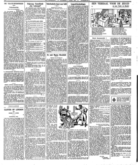 De dichter A.J.D. van Oosten, die niet tot onze alleroorspronkelijkste dichters behoort, al schrijft hij soms een aardig vers, is op een zeer oorspronkelijk idee gekomen. Hij heeft n.l. twee dichtbundels uitgegeven in één boekje (De Lantaarn. Amsterdam 1937). Begint men aan den éénen kant, dan heet het: ‘Vuur en Droom’, verzen door A.J.D. van Oosten. Begint men aan den anderen kant, dan heet het ‘Schip en vrouw’, verzen door A.J.D. van Oosten. Door twee vignetten van Dolf Henkes wordt deze Siameesche tweeling aan elkaar gehouden, zoodat het vuur geen brand kan stichten op het schip en de vrouw den droom niet kan bederven.