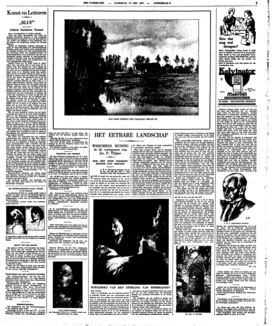 Tegenover het ‘album’ van J.W.F. Werumeus Buning, getiteld ‘Ik zie, ik zie, wat gij niet ziet’, sta ik, hoewel het zonder ruilplaatjes is, evenmin objectief, want het heeft mij den onvergetelijken stijl van Thijsse weer in herinnering gebracht. Buning verstaat, precies als Jac. P., de kunst om het landschap, dat hij bezoekt, te dramatiseeren. Hij schrijft natuurlijk met een ietwat ander accent dan Thijsse, maar hij doet het zeker niet minder knap. Hij heeft een scherp oog voor de kleur, een scherp gehoor voor de anecdote, die de kleur kan verlevendigen, maar bovenal: hij weet het landschap zoo smakelijk te maken, dat men er honger van krijgt. In zekeren zin is het dus jammer, dat de koek in deze symphonie ontbreekt.