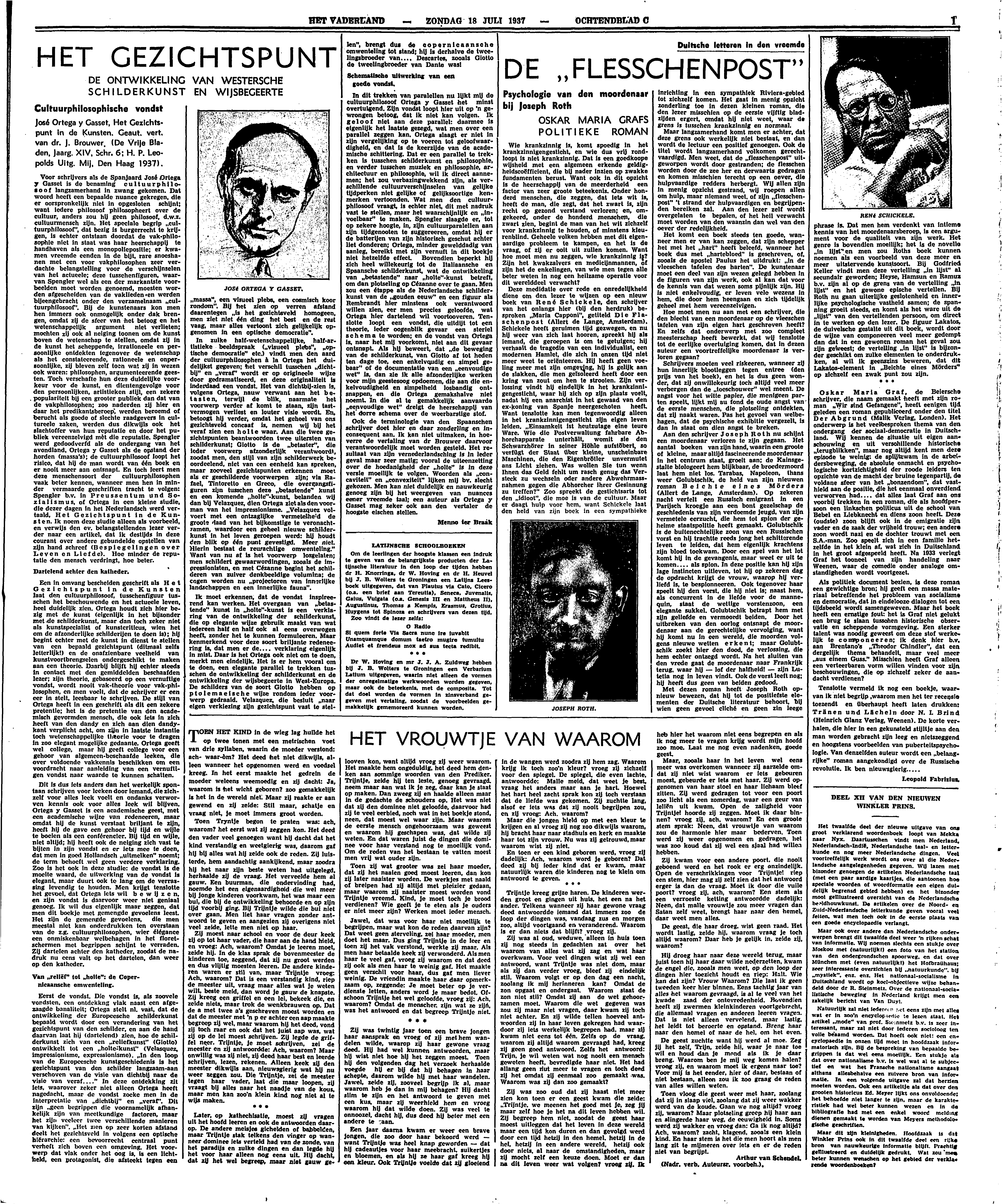 José Ortega y Gasset, Het Gezichtspunt in de Kunsten. Geaut. vert. van dr. J. Brouwer. (De Vrije Bladen, Jaarg. XIV, Schr. 6; H.P. Leopolds Uitg. Mij, Den Haag 1937).