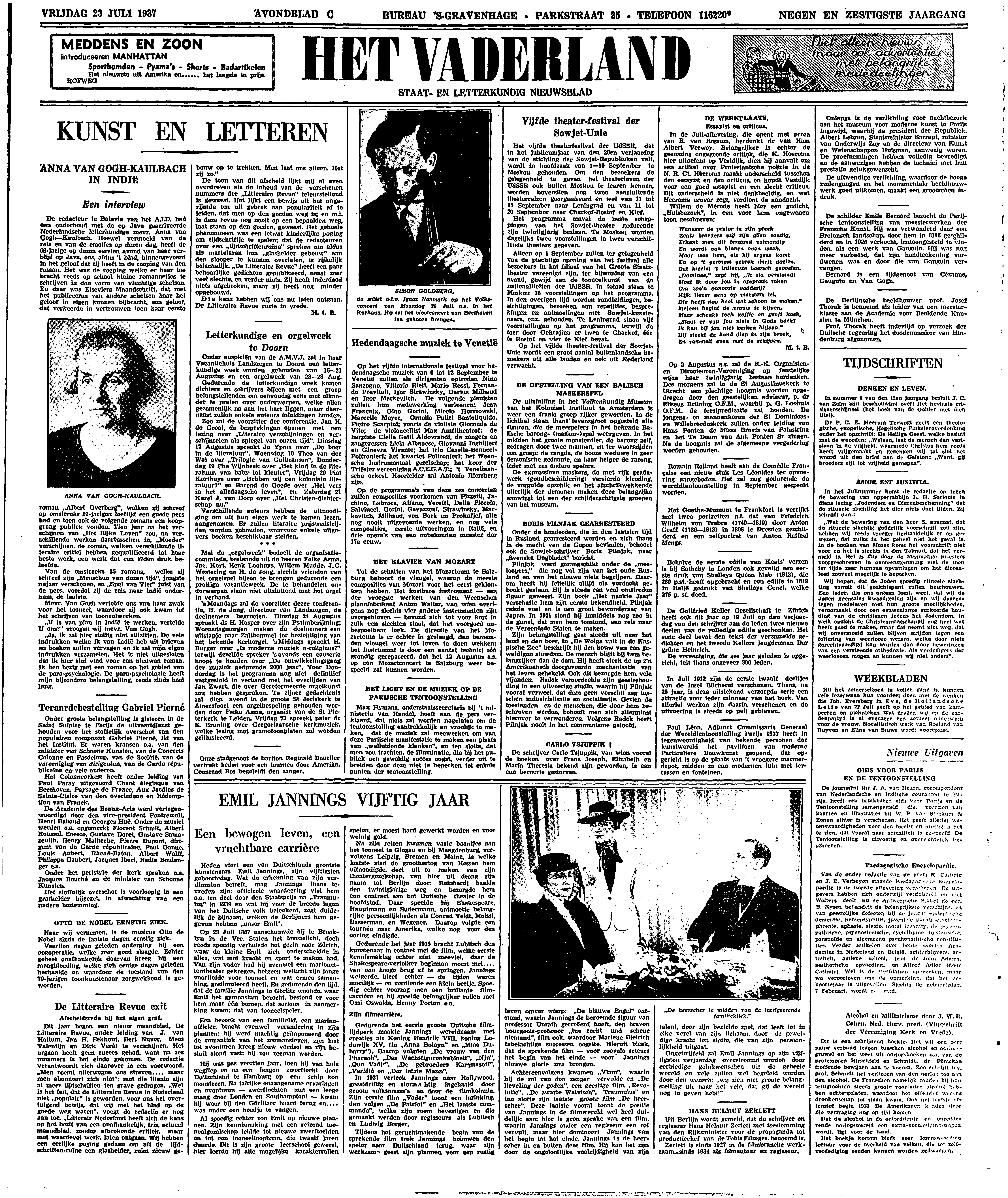Dit jaar begon een nieuw maandblad, De Litteraire Revue, onder leiding van J. van Hattum, Jan H. Eekhout, Bert Nuver, Mees Valentijn en Dirk Verèl te verschijnen. Het orgaan heeft geen succes gehad, want na zes nummers is het einde gekomen. De redactie verantwoordt zich daarover in een voorwoord. ‘Men roemt allerwegen ons streven.... maar men abonneert zich niet’: met die litanie zijn al meer tijdschriften ten grave gedragen. ‘Wel is het feit, dat de Litteraire Revue in Nederland niet “populair” is geworden, voor ons het overtuigend bewijs, dat wij met het blad op de goede weg waren’, voegt de redactie er nog aan toe. ‘Litterair Nederland heeft zich de kans op het bezit van een onafhankelijk, fris, actueel maandblad, zonder afbrekende critiek, maar met waardevol werk, laten ontgaan. Wij hebben een eerlijke poging gedaan om uit de tijdschriften-ruïne een glashelder, ruim nieuw gebouw op te trekken. Men laat ons alleen. Het zij zo.’