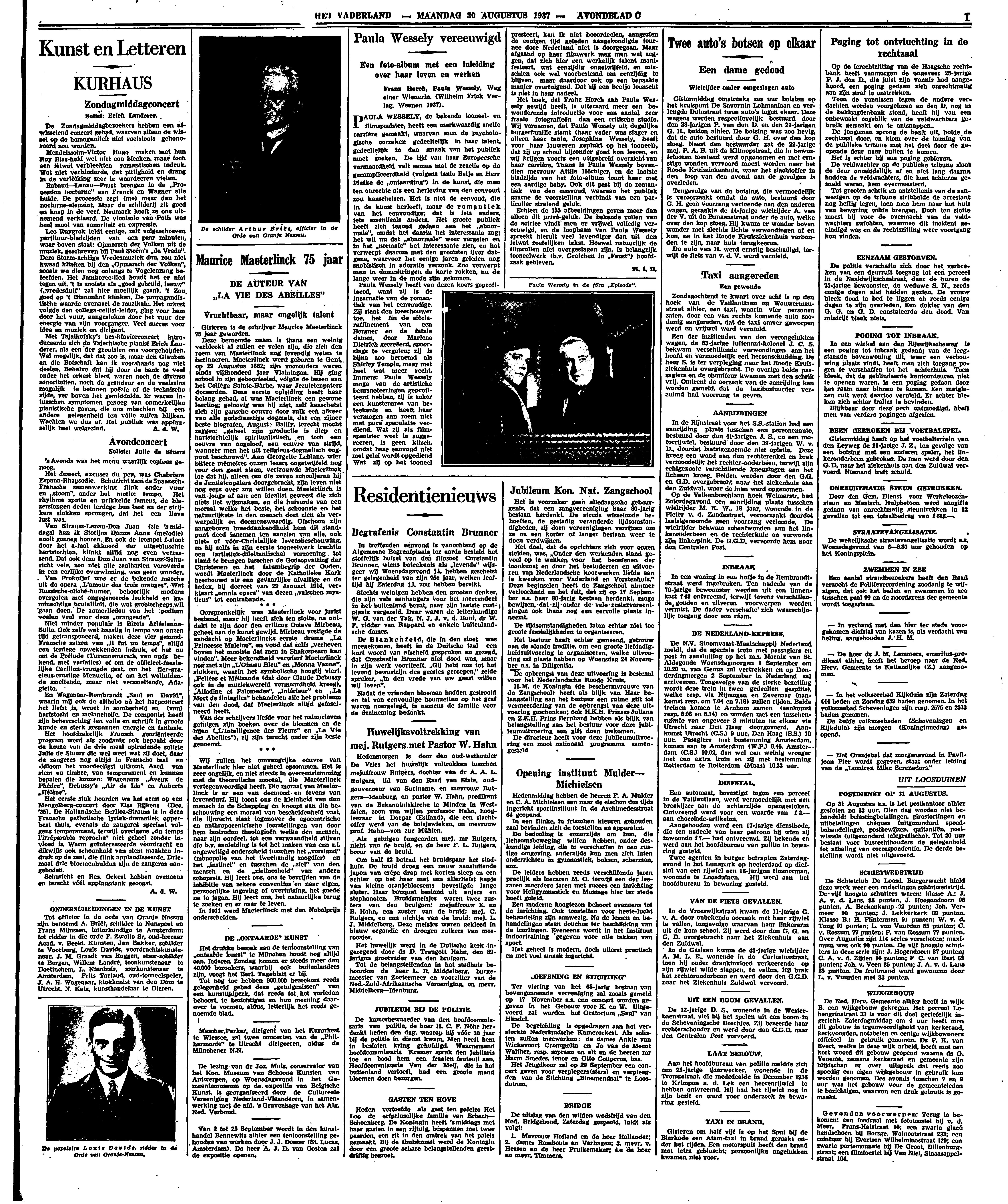 PAULA WESSELY, de bekende tooneel- en filmspeelster, heeft een merkwaardig snelle carrière gemaakt, waarvan men de psychologische oorzaken gedeeltelijk in haar talent, gedeeltelijk in den smaak van het publiek moet zoeken. De tijd van haar Europeesche vermaardheid valt samen met de reactie op de gecompliceerdheid (volgens tante Betje en Herr Piefke de ‘ontaarding’) in de kunst, die men ten onrechte als een herleving van den eenvoud zou kenschetsen. Het is niet de eenvoud, die in de kunst herleeft, maar de romantiek van het eenvoudige; dat is iets anders, iets essentieels anders. Het groote publiek heeft zich tegoed gedaan aan het ‘abnormale’, omdat het daarin het interessante zag; het wil nu dat ‘abnormale’ weer vergeten en in het ‘normale’ het interessante zien, en het verwerpt daarom met den grootsten ijver datgene, waarvoor het eenige jaren geleden nog snobistisch in adoratie verzonk. Zoo verwerpt men in dameskringen de korte rokken, nu de lange weer in de mode zijn gekomen.