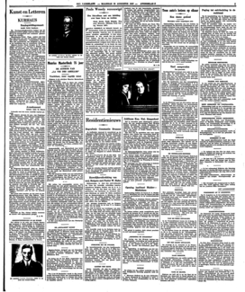 Paula Wessely heeft van dezen koers geprofiteerd, want zij is de incarnatie van de romantiek van het eenvoudige. Zij staat den toeschouwer toe, het fin de siècleraffinement van een Bergner en de fatale dames, door Marlene Dietrich gecreëerd, spoorslags te vergeten; zij is bijna zoo beroemd als Shirley Temple, maar met heel wat meer recht. Immers: Paula Wessely moge van de artistieke beursnoteeringen geprofiteerd hebben, zij is zeker een kunstenares van beteekenis en heeft haar vermogen aan roem niet met pure speculatie verdiend. Wat zij als filmspeelster weet te suggereeren, is geen kitsch, omdat haar eenvoud niet met gelei wordt opgediend Wat zij op het tooneel presteert, kan ik niet beoordeelen, aangezien de eenigen tijd geleden aangekondigde tournee door Nederland niet is doorgegaan. Maar afgaand op haar filmwerk mag men wel zeggen, dat zich hier een werkelijk talent manifesteert, wat eenzijdig ongetwijfeld, en misschien ook wel voorbestemd om eenzijdig te blijven, maar daardoor ook op een bepaalde manier overtuigend. Dat zij een beetje loenscht is niet in haar nadeel.