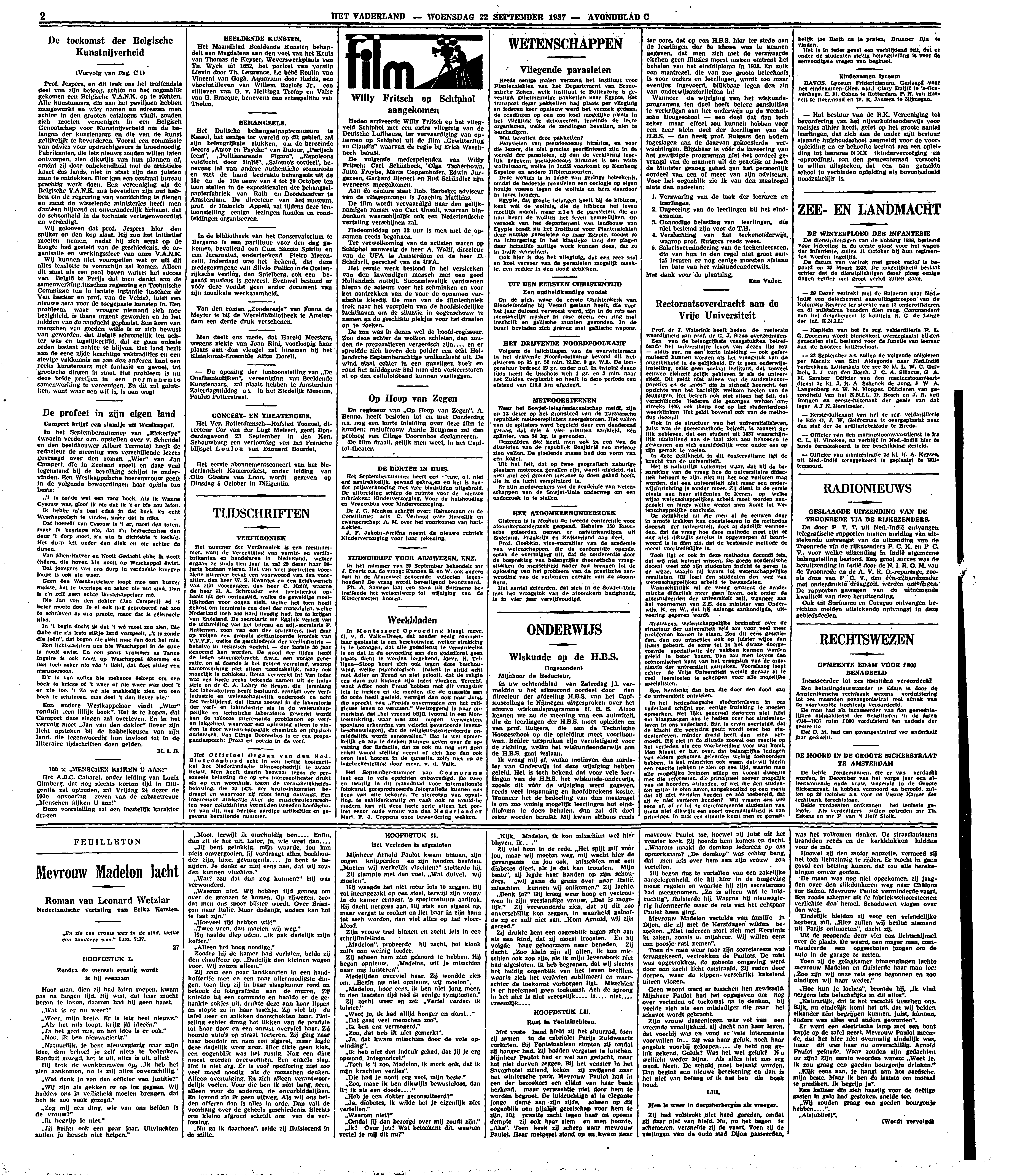 In het Septembernummer van ‘Elckerlyc’ (waarin verder o.m. opstellen over v. Schendel en den beeldhouwer Albert Termote) heeft de redacteur de meening van verschillende lezers gevraagd over den roman ‘Wier’ van Jan Campert, die in Zeeland speelt en daar veel tegenstand bij de bevolking schijnt te ondervinden. Een Westkappelsche boerenvrouw geeft in de volgende bewoordingen haar opinie ten beste: