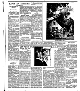 Schrift IX van den 14den jaargang der Vrije Bladen is gewijd aan een novelle, of beter gezegd prozafragment van Jan Kempe, Een Hollandsch Binnenhuisje. Ik wil er daarom het woord novelle niet voor gebruiken, omdat het fragment kop noch staart heeft.... hetgeen één der charmes is van dit merkwaardige geestesproduct. De naam Jan Kempe zegt ons niets, maar daarin moet de onbevooroordeelde (d.i. niet door reputaties bevooroordeelde) lezer zeker geen aanleiding vinden het cahier onopgemerkt aan zijn aandacht te laten voorbijgaan! Deze schrijver heeft een zeer concreet waarnemingsvermogen niet alleen, maar ook een zeer bijzonderen humor; voor beide pleit, dat men er niet dadelijk een formule voor zou kunnen vinden. Het lijkt haast wel zeker, dat Jan Kempe de werken van Vestdijk goed gelezen heeft en er den invloed in sterke mate van ondergaan; met name aan zekere scènes uit ‘Else Böhler’, waarin de burgerlijkheid met zooveel ijzige en toch amusante bitterheid wordt bespuwd, doet ‘Een Hollandsch Binnenhuisje’ denken.
