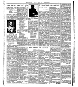 Zoo projecteerde reeds in Voorbij de Wegen Roland Holst zijn menschelijke gestalte tegen een metaphysischen, legendarischen, ‘voortijdelijken’ achtergrond; deze projectie herhaalt hij hier thans in de aristocratische veelvoudige soberheid van korte gedichten, waarin hij nog meer met de persoonlijke aanleiding tot die gedichten heeft afgerekend. De ontmenschelijking heeft zich voor Roland Holst echter voltrokken zonder eenige opzettelijke oppositie tegen het psychologische wezen mensch als zoodanig en eveneens zonder eenig philosophisch betoog; van den beginne af heeft hij geteerd op het heimwee naar ‘een rijk, dat wij verloren achter den tijd’, en het komt zelfs niet bij den aandachtigen lezer van deze poëzie op om te gaan informeeren naar de philosophische fundeering van dat dualisme. Wanneer men de wortels van Holsts dualisme wil opsporen, kan men de philosophie buiten beschouwing laten; want zijn wereldbeeld is ontstaan uit de levenservaring van een gespleten natuur, die tevens een door en door dichterlijke natuur is. De dichter staat hier altijd voor den philosoof en den psycholoog; daarom is Holst zelfs als prozaïst dichter, want ook in zijn proza neemt de wereld dadelijk de gedaante aan van een visionnaire ‘tweede wereld’, waarachter het bestaan van een eerste, verloren wereld al stilzwijgend is verondersteld (hij schreef eens een essay over bommenwerpers, waarbij men het gevoel had, dat zij aanstonds een noodlanding zouden maken op de Elyseesche velden!).