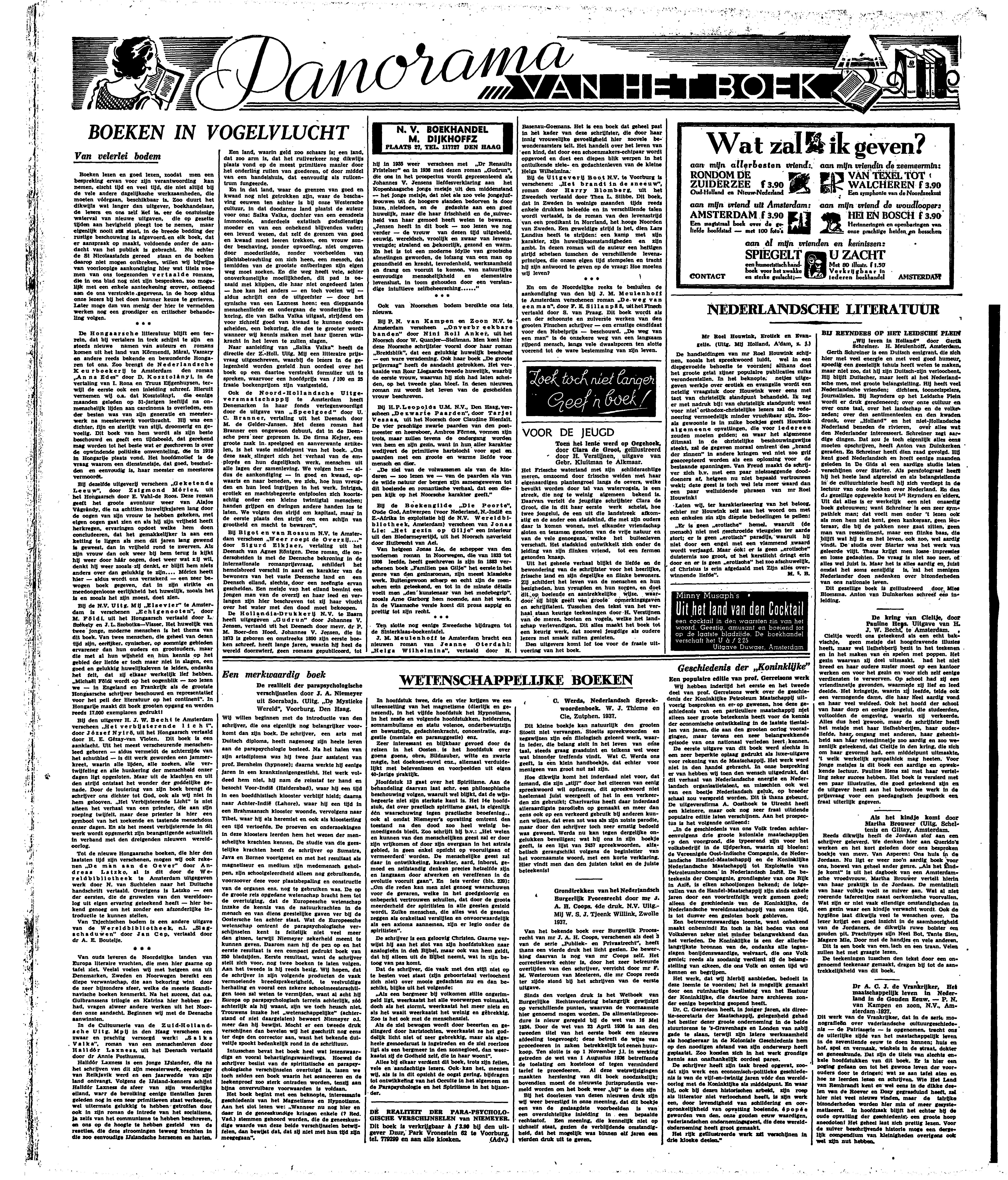 De handleidingen van mr Roel Houwink schijnen, zooals het spreekwoord luidt, wel in een diepgevoelde behoefte te voorzien; althans doet het groote getal zijner populaire publicaties zulks veronderstellen. In het beknopte, netjes uitgegeven werkje over erotiek en evangelie wordt een netelig vraagstuk door Houwink weer eens met tact van christelijk standpunt behandeld. Ik zeg er met nadruk bij: van christelijk standpunt; want voor niet' orthodox-christelijke lezers zal de redeneering vermoedelijk minder vruchtbaar zijn. Zooals gewoonte is in zulke boekjes geeft Houwink algemeene opvattingen, die voor iedereen zouden moeten gelden; en waar het algemeene ditmaal in de christelijke beschouwingswijze steekt, zal de gegeven moraal omtrent den ‘brand der zinnen’ in andere kringen wel niet zoo grif geaccepteerd worden als een oplossing voor de bestaande spanningen. Van Freud maakt de schrijver zich b.v. met een paar nietszeggende dooddoeners af, hetgeen nu niet bepaald vertrouwen wekt; deze geest is toch wel iets meer waard dan een paar welluidende phrasen van mr Roel Houwink!
