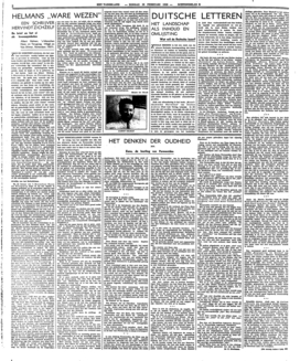 Voor het eerst vindt men nu den ‘ouden’ Helman van Zuid Zuid West en Mijn Aap Schreit terug in dit laatste boek van zijn hand. Met één slag heeft de schrijver zijn ‘ware wezen’ herontdekt; hij schrijft weer. zooals hij schrijven kan, en hij schrijft, zonder overigens ook maar in het minst in een repliek van zijn eerste boeken te vervallen. boeiend, beknopt, zakelijk, natuurlijk; zijn stijl is weer rhythmisch, en dat niet alleen in den muzikalen zin; rhythme in het proza is iets anders dan rhythme in de muziek, het veronderstelt o.a., dat de schrijver met zijn eigen denken en voelen organisch meeschrijft, het is ook een rhythme van intellectueel gehalte. In dezen zin was Helman langen tijd zijn rhythme kwijt. In 's Menschen Heen- en Terugweg nu is de vorm een natuurlijk symbool van den inhoud; men merkt dat spoedig genoeg, al lezende, aangezien men niet de neiging bij zich voelt opkomen tusschen bedoeling en verwezenlijking onderscheid te maken. Dit klemt temeer, omdat, achteraf beschouwd, de bedoeling van den schrijver met deze twee verhalen ‘heen’ en ‘terug’ heel duidelijk uit de lijst springt. In het eerste verhaal (Heenweg; De Brief) beschrijft hij de lotgevallen van een man (in den ‘ik’-stijl), die in oorlogstijd van den minister opdracht krijgt een brief te overhandigen, waarvan hij den inhoud niet kent, aan een hem onbekend persoon, die om dien brief zal vragen; de brief is hier, zooals Binnendijk het in een uitstekend opstel over dit boek in Groot-Nederland heeft geformuleerd ‘het exempel van de ziel, in haar eigen ambivalentie onbegrijpelijk blijvend voor zichzelf, maar gestadig op zoek naar de oplossing van haar raadsel, die zij van een ander verwacht, hoewel deze oplossing zelf het geheim of omgekeerd het geheim de oplossing zelf zal blijken’