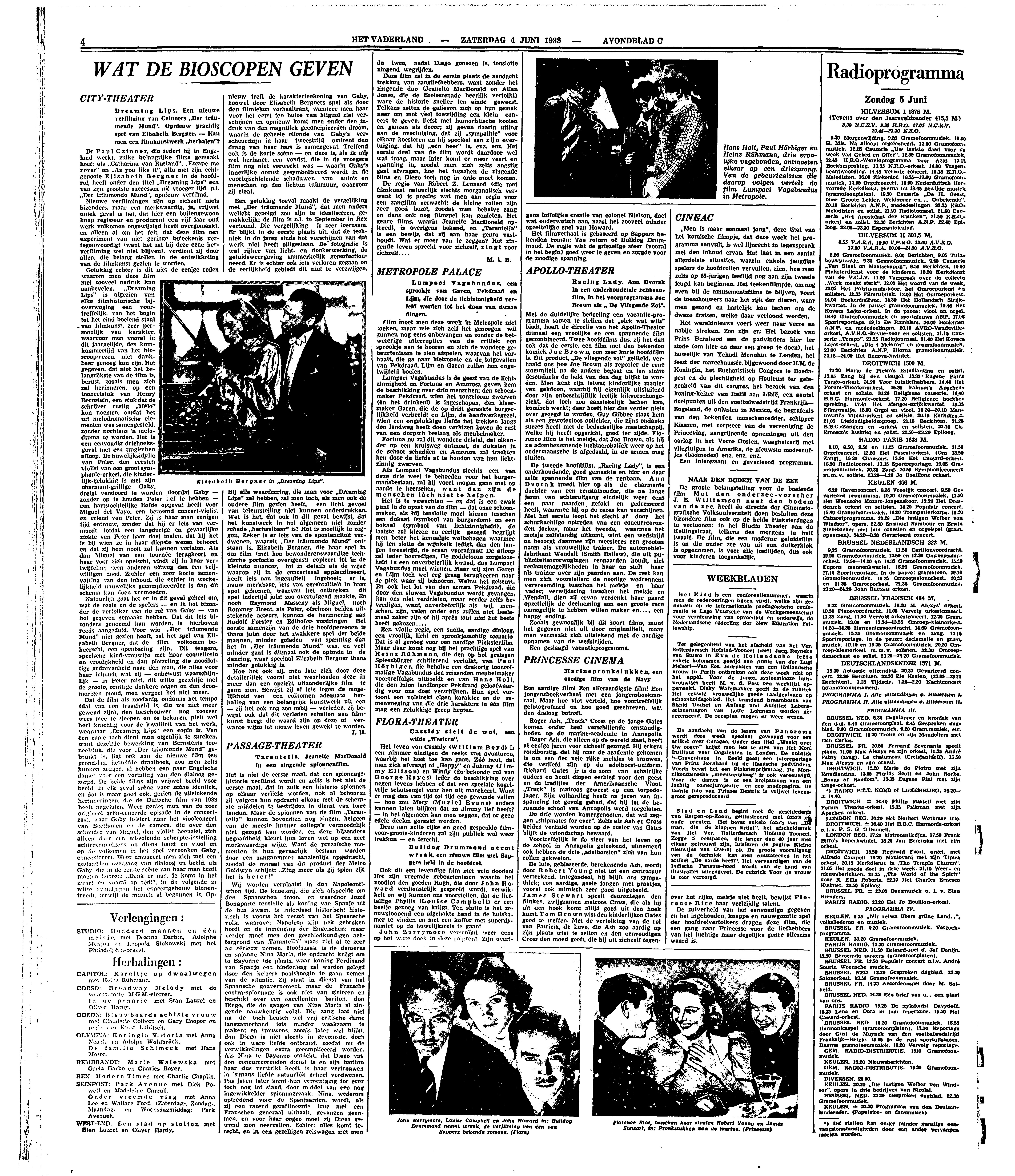 De regie van Robert Z. Leonard (die met filmkunst natuurlijk slechts morganatisch verwant is) is precies wat men aan regie voor een zangfilm verwacht; de kleine rollen zijn zeer goed bezet, zoodat men behalve zang en dans ook nog filmspel kan genieten. Het genre films, waarin Jeanette MacDonald optreedt, is overigens bekend, en ‘Tarantella’ is een bewijs, dat zij aan haar genre vasthoudt. Wat er meer van te zeggen? Het zingende leven spreekt voor zichzelf, zingt voor zichzelf....