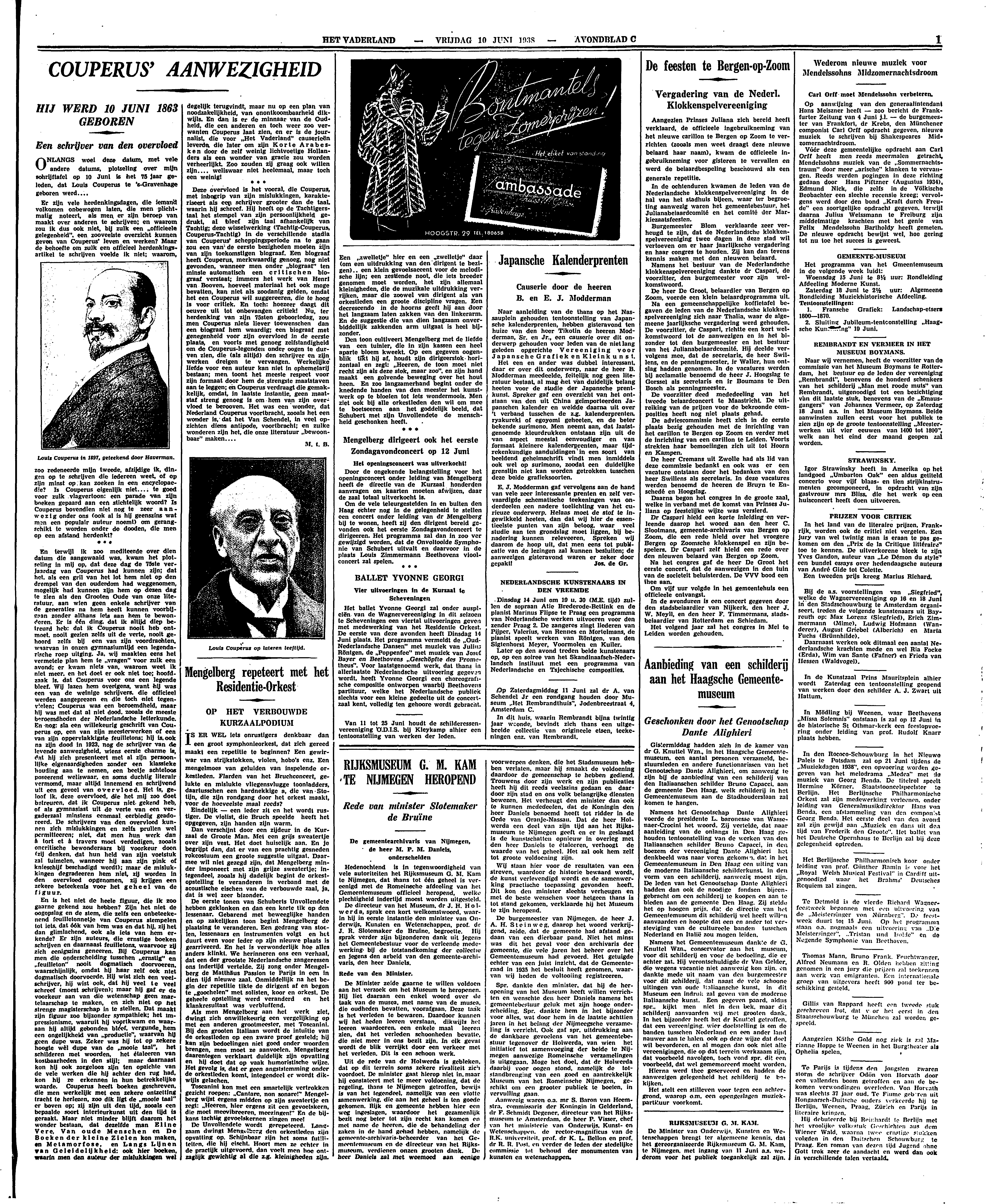 ONLANGS woei deze datum, met vele andere datums, plotseling over mijn schrijftafel op 10 Juni is het 75 jaar geleden, dat Louis Couperus te 's-Gravenhage geboren werd....