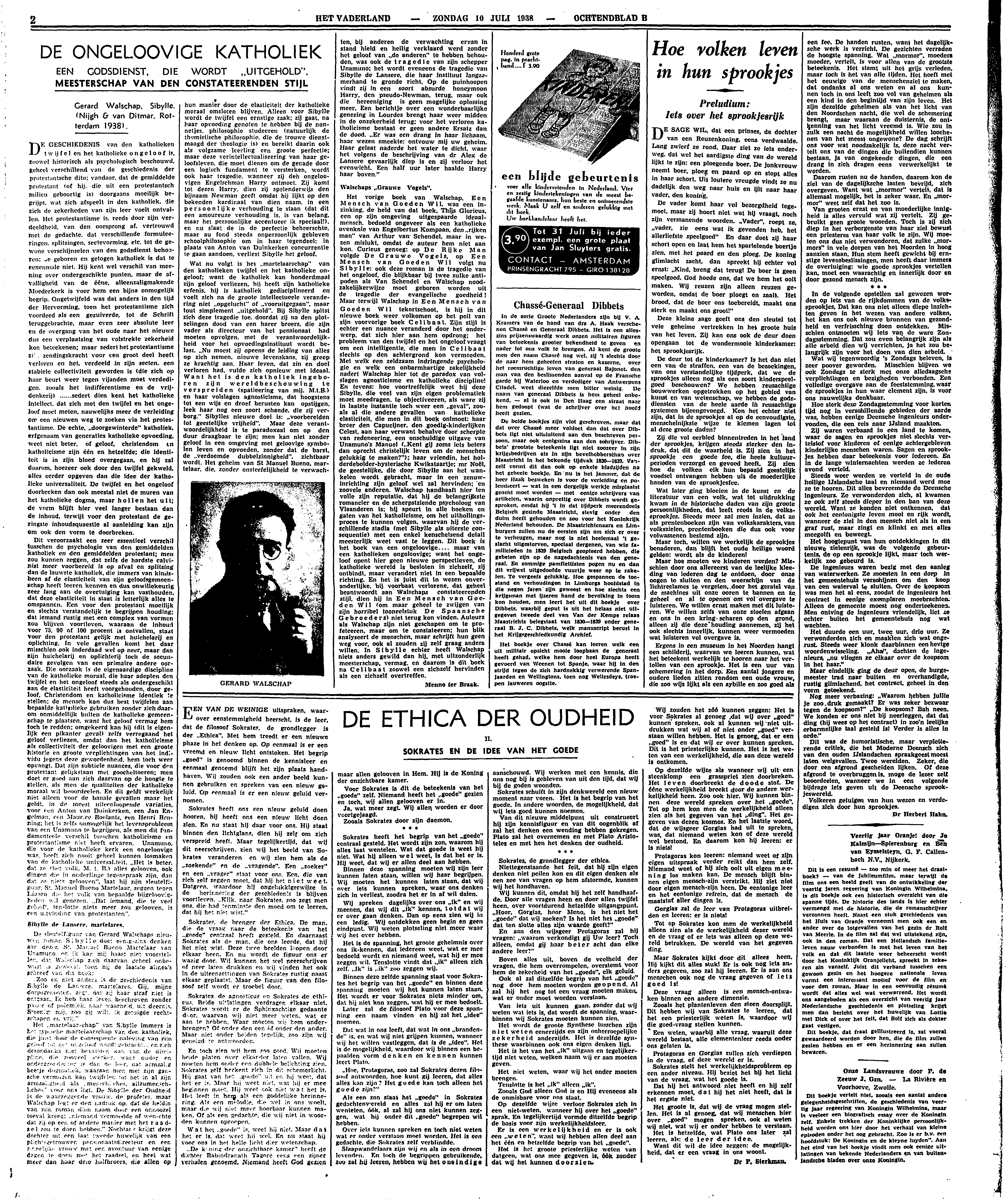 Het vorige boek van Walschap. Een Mensch van Goeden Wil. was een inzinking, de held van dat boek, Thijs Glorieus, een op zijn omgeving uitgespaarde ideaalmensch, bedoeld ongeveer als een katholieke ovenknie van Engelbertus Kompaan, den ‘rijken man’ van Arthur van Schendel, maar in wezen mislukt, omdat de auteur hem niet aan kon. Curieus genoeg: op De Rijke Man volgde De Grauwe Vogels, op Een Mensch van Goeden Wil volgt nu Sibylle: ook deze roman is de tragedie van het ongeloof, die blijkbaar bij twee zulke antipoden als Van Schendel en Walschap noodzakelijkerwijze moet geboren worden uit de tragedie der evangelische goedheid! Maar terwijl Walschap in Een Mensch van Goeden Wil tekortschoot, is hij in dit nieuwe boek weer volkomen op het peil van zijn voorvorige boek Celibaat. Zijn stijl is echter een nuance veranderd door het onderwerp, dat zich hier aan hem opdrong; het probleem van den twijfel en het ongeloof vraagt om een intelligentie, die men in Celibaat slechts op den achtergrond kon vermoeden. Met welk een zeldzaam indringende psychologie en welk een onbarmhartige zakelijkheid nadert Walschap hier tot de paradox van volslagen agnosticisme en katholieke discipline! En tevens: hoe voortreffelijk weet hij deze Sibylle, die veel van zijn eigen problematiek moet meedragen, te objectiveeren, als ware zij in laatste instantie toch weer een ‘geval’, zooals al die andere gevallen van katholieke elasticiteit, die men in dit boek ontmoet: haar broer den Capucijner, den goedig-kinderlijken Celest, aan haar verwant behalve door scherpte van redeneering, een onschuldige uitgave van Unamuno's Manuel (‘Kent gij soms iets beters dan oprecht christelijk leven om de menschen gelukkig te maken?’); haar vriendin, het holderdebolder-hysterische Kwikstaartje; mr Noël, de geestelijke, die door Sibylle aan het wankelen wordt gebracht, maar in een zenuwinrichting zijn geloof wel zal hervinden; en zoovele anderen. Walschap handhaaft hier ten volle zijn reputatie, dat hij de belangrijkste romancier en de scherpstziende psycholoog van Vlaanderen is; hij speurt in alle hoeken en gaten van het katholicisme, om het uithollingsproces te kunnen volgen, waarvan hij de verschillende stadia (met Sibylle als uiterste consequentie) met een enkel kenschetsend detail meesterlijk weet vast te leggen. Dit boek is het boek van een ongeloovige.... maar van een katholieken ongeloovige; want het ongeloof opent hier geen nieuwe perspectieven, de katholieke wereld is besloten in zichzelf, zij ontbindt, maar verandert niet in een bepaalde richting. En het is juist dit in wezen onveranderlijke, bij voorbaat verlorene, dat geheel beantwoordt aan Walschaps constateerenden stijl, dien hij in Een Mensch van Goeden Wil (om maar geheel te zwijgen van zijn horribel tooneelstuk De Spaansche Gebroeders) niet terug kon vinden. Auteurs als Walschap zijn niet geschapen om te profeteeren, maar om te constateeren; hun blik analyseert de menschen, maar schrijft hun geen weg voor, ook al zouden zij zelf graag anders willen. In Sibylle echter heeft Walschap niets anders gewild dan hij, met uitzonderlijk meesterschap, vermag, en daarom is dit boek na Celibaat zoowel een zichzelf hervinden als een zichzelf overtreffen.