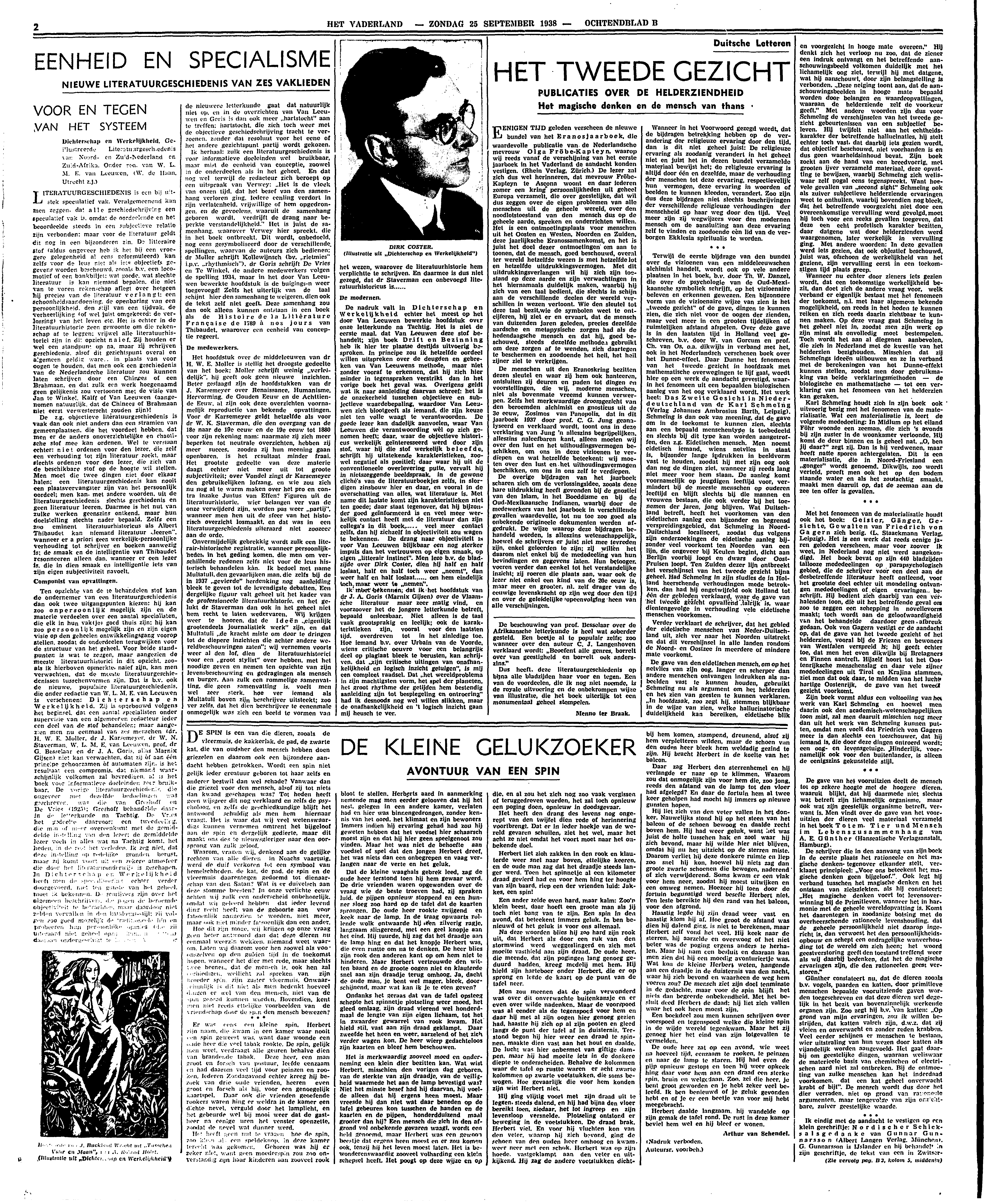 Ik moet bekennen, dat ik het hoofdstuk van dr J.A. Goris (Marnix Gijsen) over de Vlaamsche literatuur maar zeer matig vind, en voorzoover het de jongere letterkunde betreft, bepaald onleesbaar. Niet alleen is de taal vaak grootsprakig en leelijk; ook de karakteristieken zijn, vooral voor den laatsten tijd, overdreven tot in het zinledige toe. Hoe iemand b.v. over Urbain van de Voorde, wiens critische oeuvre voor een belangrijk deel op plagiaat bleek te berusten, kan schrijven, dat ‘zijn critische uitingen van onafhankelijkheid en logisch inzicht getuigen’, is mij een compleet raadsel. Dat ‘het wereldproblema in zijn machtigsten vorm, het spel der planeten, het groot rhythme der getijden hem bestendig aanleiding zijn tot bespiegeling en ontroering’ had ik desnoods nog wel willen slikken, maar de onafhankelijkheid en 't logisch inzicht gaan mij heusch te ver.