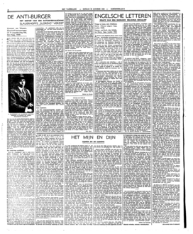Ik meen, dat men juist in zulke symptomen de psychologische verklaring moet zoeken van het verschijnsel, dat in de werken van Slauerhoff ‘slordigheid’ heet. Er ligt aan deze truc een zeer reëel gevoel van onverschilligheid ten opzichte van de burgerlijke regels ten grondslag; zoo had Slauerhoff ook een zeer reëelen ondergrond van echte, aangeboren slordigheid. Maar het doorzetten van de truc, tot de grap aan oplichterij gaat grenzen, het verbeten zich inleven in den toestand door de manoeuvre geschapen verraadt een geheel anderen karaktertrek; de moedwillige tendens om de slordigheid uit te buiten en zelfs te systematiseeren tot een levensbeschouwing. Deze soort slordigheid heeft weinig meer van doen met de nonchalance ‘pure’; zij is een manier van systeemvorming, zij is een uitgesproken sociale neiging.... maar een sociale neiging, die zich tegen de maatschappij richt, die agressief is zonder door de agressie partijvorming te beoogen. Deze en dergelijke mystificaties (Slauerhoff heeft b.v. ook met een zonderlinge taaiheid lang vastgehouden aan zijn pseudoniem John Ravenswood, waarvan ieder wist wien het verborg!) karakteriseeren niet den onburgerlijken mensch, den scepticus, maar den anti-burger, den omgekeerden burger, in wien de burgerlijke instincten op volle kracht voortleven, alleen zonder op de gewone burgerlijke conglomeratie bedacht te zijn. Zij karakteriseeren den romanticus, in wien de behoefte aan uiterst persoonlijk leven gepaard gaat met de behoefte daardoor de philisters te bruskeeren; de vergelijking met Henri de Montherlant, door Van Wessem in het voorbijgaan gemaakt, zou men onder dezen gezichtshoek door kunnen trekken.