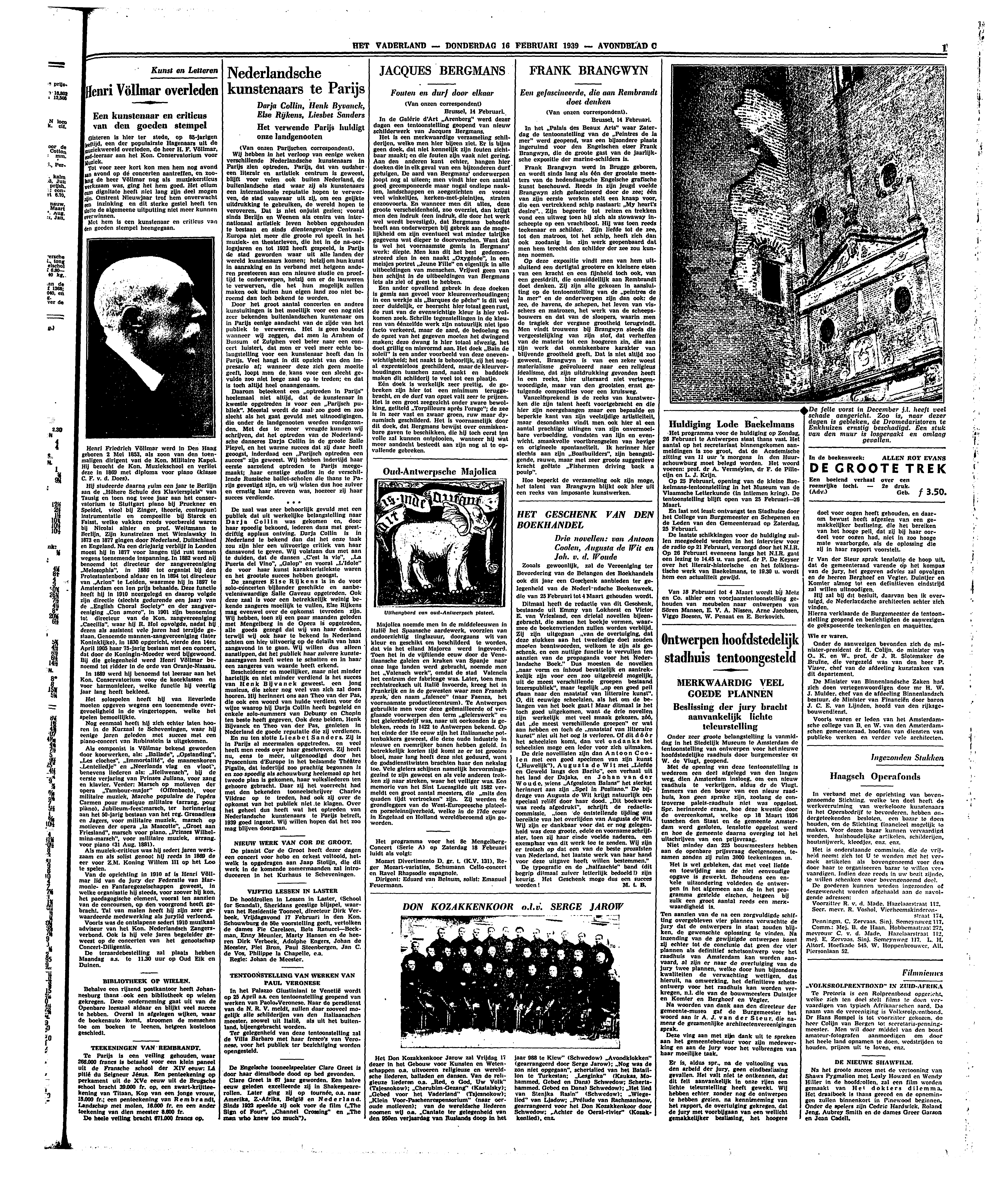 De drie novellisten zijn dan Antoon Coolen met een goed specimen van zijn kunst (‘Huwelijk’), Augusta de Wit met ‘Liefde en Geweld langs den Barito’, een verhaal uit het land der Dajaks, en Johan van der Woude, wiens ‘Afgesloten Balans’ het sterkst herinnert aan zijn ‘Spel in Positano.’ De bijdrage van Augusta de Wit krijgt natuurlijk een speciaal reliëf door haar dood. ‘Dit boekwerk was reeds afgedrukt’, schrijft de redactiecommissie, ‘toen de ontstellende tijding ons bereikte van het overlijden van Augusta de Wit. Wij zijn er dankbaar voor dat er nog gelegenheid was deze groote, edele en voorname schrijfster, toen zij haar einde voelde naderen, een exemplaar van dit werk toe te zenden. Wij zijn er trotsch op dat een van de beste prozaïsten van Nederland, het laatste werk van haar hand voor deze uitgave heeft willen bestemmen.’