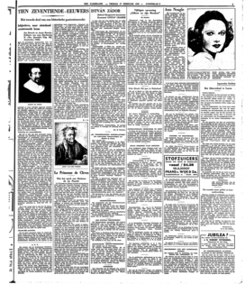 Wat Romein hier tegen de opvattingen van Gorter over den regentendienaar in Vondel aanvoert, lijkt mij zeer steekhoudend, evenals zijn exposé over Vondels ‘gebrek aan erotiek’, waardoor Romein de ‘nooit verklaarde bloedeloosheid zijner psychologie’ wil motiveeren; het geding tusschen den Doopsgezinden en den katholieken Vondel zal echter wel nooit tot een goed einde worden gebracht, aangezien men altijd de vrijheid heeft in den lateren, katholieken Vondel nog den Dooper en in den vroegeren Vondel reeds den katholiek te ontdekken. Maar Romein behandelt zijn stof hier boeiend en zonder parti pris, zoodat men ook dit portret onder de beste kan rekenen. Ook zijn opstel over Spinoza is van beteekenis, niet zoozeer voor de kennis van den denker, als wel voor die van den mensch.