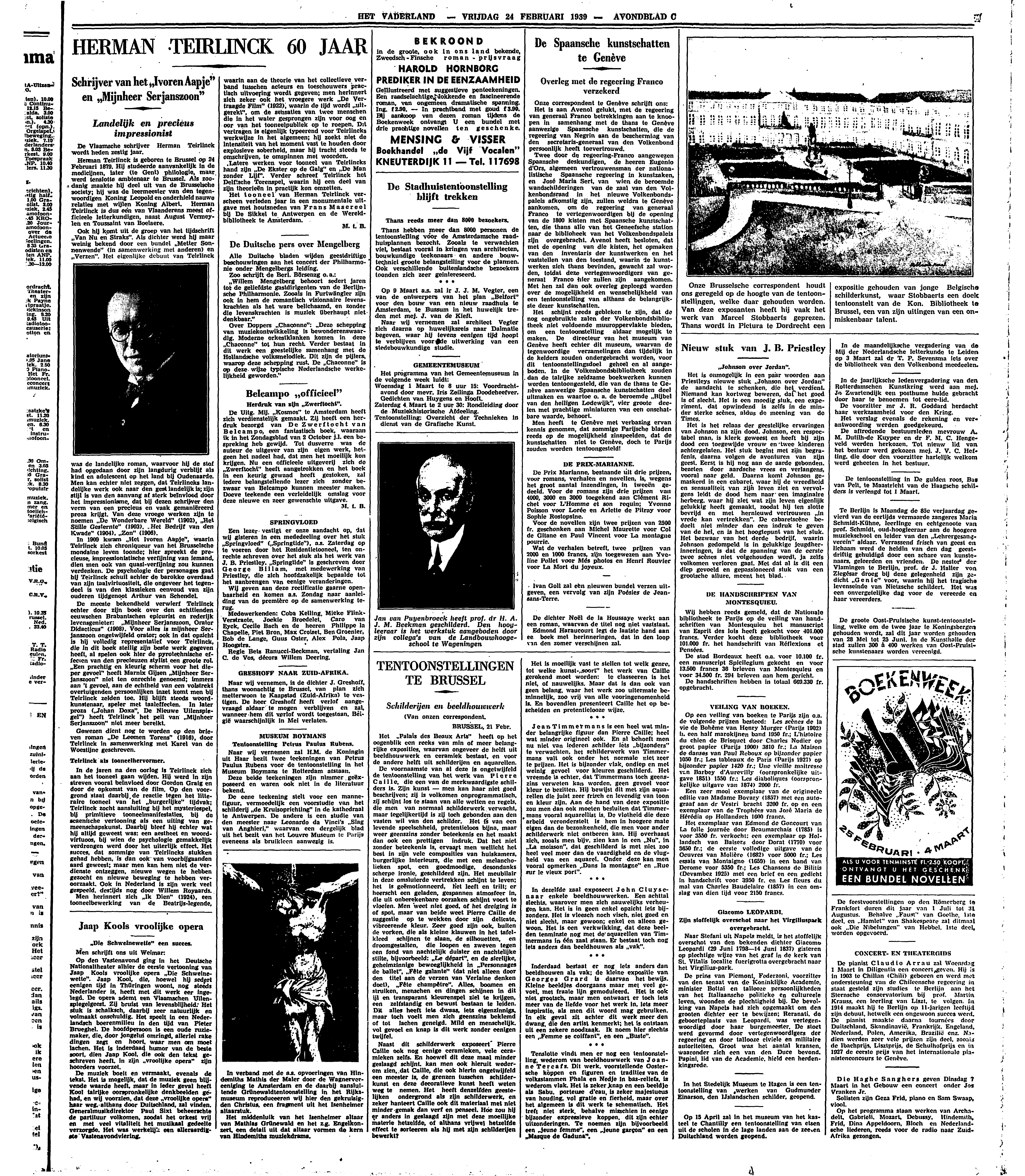 Men herinnert zich ‘Ik Dien’ (1924), een tooneelbewerking van de Beatrijs-legende, waarin aan de theorie van het collectieve verband tusschen acteurs en toeschouwers practisch uitvoering wordt gegeven; men herinnert zich zeker ook het vroegere werk ‘De Vertraagde Film’ (1922), waarin de tijd wordt ‘uitgerekt’, om de sensaties van twee menschen die in het water gesprongen zijn voor oog en oor van het tooneelpubliek op te roepen. Dit vertragen is eigenlijk typeerend voor Teirlincks werkwijze in het algemeen; hij zoekt niet de intensiteit van het moment vast te houden door explosieve soberheid, maar hij tracht steeds te omschrijven, te omspinnen met woorden.