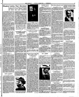 Het dezer dagen verschenen eerste deel der reeks (waarvan de redactie berust bij dr A.H. Cornette, mr P.N. van Eyck, dr J. van Mierlo S.J., dr H.W.E. Möller, dr R. Verdeyen, dr Jan de Vries en dr J. Wille) wijst reeds in de goede richting. Wij mogen het waarschijnlijk als model beschouwen voor wat volgen gaat en daarom mogen wij wel even bij het uiterlijk stilstaan. Dit deel Geestelijke Epiek der Middeleeuwen, door prof. dr J. van Mierlo S.J., voldoet in vrijwel ieder opzicht aan de eischen, die men aan een goedkoope en toch soliede boekuitgave kan stellen. De druk is duidelijk, de bladspiegel aangenaam, de halfleeren rug degelijk, het linnen van den band sober van toon. Het moet, dunkt mij, voor iederen boekenliefhebber 'n genot zijn honderd deelen in dit formaat in zijn kast te hebben! Uitgeefster is de Uitg.-Mij Elsevier te Amsterdam, die dus eer van haar werk heeft.