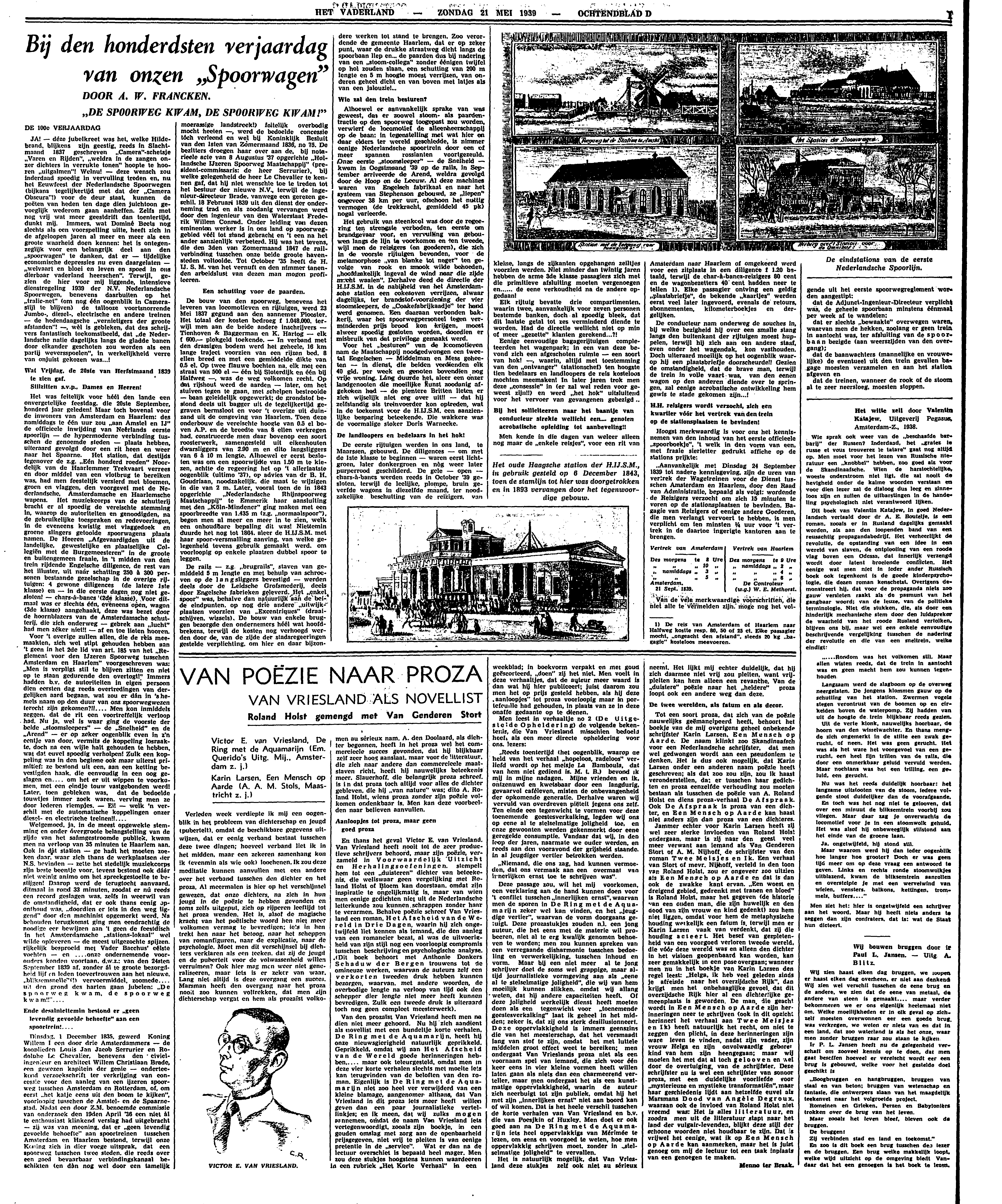 En thans het geval Victor E. van Vriesland. Van Vriesland heeft nooit tot de zeer productieve schrijvers behoord, maar zijn poëzie, verzameld in Voorwaardelijk Uitzicht en Herhalingsoefeningen. stempelt hem tot een ‘duisteren’ dichter van beteekenis, die weliswaar geen vergelijking met Roland Holst of Bloem kan doorstaan, omdat zijn inspiratie te ongelijkmatig is, maar van wien men eenige gedichten niet uit de Nederlandsche letterkunde zou kunnen schrappen zonder haar te verarmen. Behalve poëzie schreef Van Vriesland een roman. Het Afscheid van de Wereld in Drie Dagen, waarin hij zich ongetwijfeld liet kennen als iemand, die den aanleg van een romancier bezat, al was de uitvoerigheid van zijn stijl nog een voorloopig compromis tusschen beschrijving en psychologische analyse. (Dit boek behoort met Anthonie Donkers Schaduw der Bergen trouwens tot de omineuze werken, waarvan de auteurs zelf een verkorten tweeden druk hebben kunnen bezorgen, waarvan, met andere woorden, de overbodige lengte na verloop van tijd ook den schepper dier lengte niet meer heeft kunnen bevredigen. Zulk een tweede druk is uiteraard toch nog geen compleet meesterwerk).