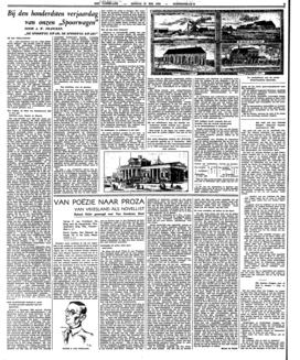 Verleden week verdiepte ik mij een oogenblik in het probleem van dichterschap en jeugd (puberteit), omdat de beschikbare gegevens uitwijzen, dat er eenig verband bestaat tusschen deze twee dingen; hoeveel verband liet ik in het midden, maar een zekeren samenhang kon ik (evenmin als wie ook) loochenen. Ik zou deze meditatie kunnen aanvullen met een andere over het verband tusschen den dichter en het proza. Al meermalen is hier op het verschijnsel gewezen, dat onze dichters, na zich in hun jeugd in de poëzie te hebben gevonden en soms zelfs uitgeput, zich op rijperen leeftijd tot het proza wenden. Het is, alsof de magische kracht van het poëtische woord hen niet meer volkomen vermag te bevredigen; iets in hen trekt hen naar het betoog, naar het scheppen van romanfiguren, naar de explicatie, naar de psychologie. Moet men dit verschijnsel bij dichters verklaren als een teeken, dat zij de jeugd en de puberteit voor de volwassenheid willen verruimen? Ook hier mag men weer niet generaliseeren, maar iets is er zeker van waar. Lang niet altijd is deze overgang een succes. Marsman heeft den overgang naar het proza nooit zoo kunnen voltrekken, dat men zijn dichterschap vergat en hem als prozaïst volkomen au sérieux nam. A. den Doolaard, als dichter begonnen, heeft in het proza wel het commercieele succes gevonden, dat hij blijkbaar zelf zeer hoog aanslaat, maar voor de litteratuur, die zich naar andere dan commercieele maatstaven richt, heeft hij nauwelijks beteekenis meer. Slauerhoff, die belangrijk proza schreef. is in dat proza toch altijd voor alles de dichter gebleven, die hij ‘van nature’ was; dito A. Roland Holst, wiens proza zonder zijn poëzie volkomen ondenkbaar is. Men kan deze voorbeelden naar believen aanvullen.