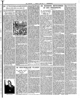 Ik heb naar aanleiding van zijn drie romans Een Hollandsch Drama, De Rijke Man en De Grauwe Vogels al meermalen trachten aan te toonen, dat men in Van Schendel inderdaad zulk een stroomaanbidder heeft te zien. Ongelukkig voor den echten stroomaanbidder: men heeft in het algemeen een verkeerde voorstelling van hem; men stelt hem zich voor als een wildeman of een bohémien, afkeerig van alle stabiliteit, de dingen door en over elkaar heen gooiend om vooral maar niet den indruk te maken van een nauwkeurigen ambtenaar, omdat in den stroom toch alle onderscheidingen verloren gaan. Misschien zijn er inderdaad ook wel zulke stroomaanbidders, maar Van Schendel behoort dan toteen hoogere, een ‘klassieker’ soort; bij hem is het ‘anders’ van minstens evenveel belang als het ‘eender’, of beter gezegd: Van Schendel blijkt er zich in zijn gansche oeuvre voortdurend van bewust, dat men den stroom slechts opvangen kan in afzonderlijke druppels, die alle uit de ‘eendere’ rivier komen, maar telkens op een ‘ander’ oogenblik die rivier vertegenwoordigen. Dat is een wijsheid, waarbij een stroomaanbidder tegelijk een evenwichtig mensch en een harmonisch schrijver kan zijn; hij schept telkens uit den stroom en gaat verder, om dat ‘scheppende’ gebaar te herhalen. Het is telkens weer dezelfde rivier (‘eender’), maar bij iedere gelegenheid is de situatie ‘anders.’