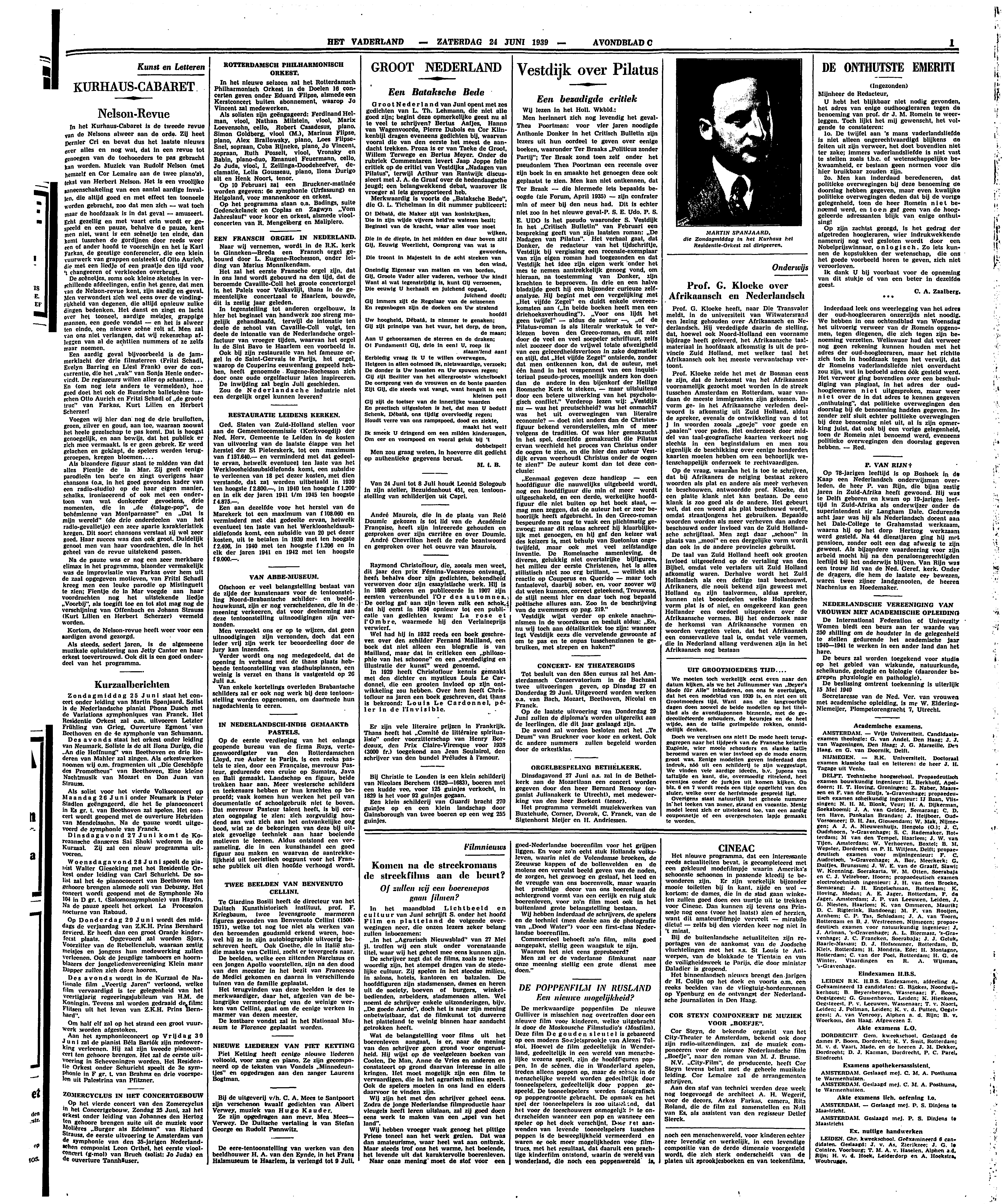 Groot Nederland van Juni opent met zes gedichten van L.Th. Lehmann, die niet alle goed zijn; begint deze opmerkelijke geest nu al te veel te schrijven? Bertus Aafjes, Hanno van Wagenvoorde, Pierre Dubois en Cor Klinkenbijl dragen eveneens gedichten bij, waarvan vooral die van den eerste het meest de aandacht trekken. Proza is er van Taeke de Groot, Willem Terwege en Bertus Meyer. Onder de rubriek Commentaren levert Jaap Joppe felle critiek op de critici van Vestdijks ‘Nadagen van Pilatus’, terwijl Arthur van Rantwijk discussieert met J.A. de Graaf over de hedendaagsche jeugd: een belangwekkend debat, waarover ik vroeger al iets gerapporteerd heb.
