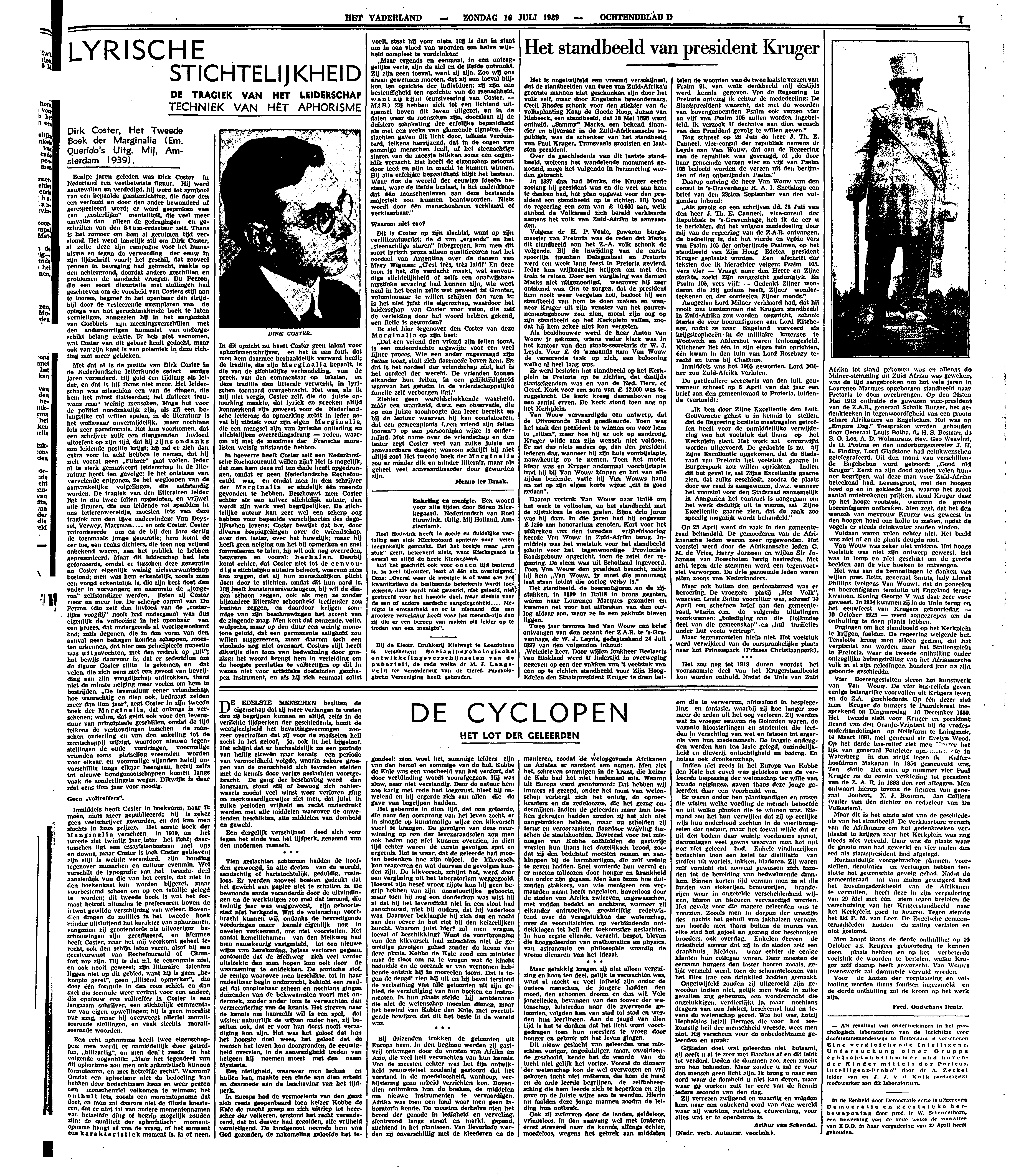 Eenige jaren geleden was Dirk Coster in Nederland een veelbetwiste figuur. Hij werd aangevallen en verdedigd, hij werd tot symbool van een bepaalde geestesrichting, die door den een verfoeid en door den ander bewonderd of gerespecteerd werd; er werd gesproken van een ‘costerlijke’ mentaliteit, die veel meer omvatte dan alleen de gedragingen en geschriften van den Stem-redacteur zelf. Thans is het rumoer om hem al geruimen tijd verstomd. Het werd tamelijk stil om Dirk Coster, al zette deze zijn campagne voor het humanisme en tegen de verwording der eeuw in zijn tijdschrift voort; het geschil, dat zooveel pennen in beweging had gebracht, raakte op den achtergrond, doordat andere geschillen en problemen de aandacht vroegen. Du Perron, die een soort dissertatie met stellingen had geschreven om de voosheid van Costers stijl aan te toonen, begroef in het openbaar den strijdbijl door de resteerende exemplaren van de oplage van het geruchtmakende boek te laten vernietigen, aangezien hij in het aangezicht van Goebbels zijn meeningsverschillen met den andersoortigen humanist van ondergeschikt belang achtte. Ik heb niet vernomen, wat Coster van dit gebaar heeft gedacht, maar ook van zijn kant is van polemiek in deze richting niet meer gebleken.