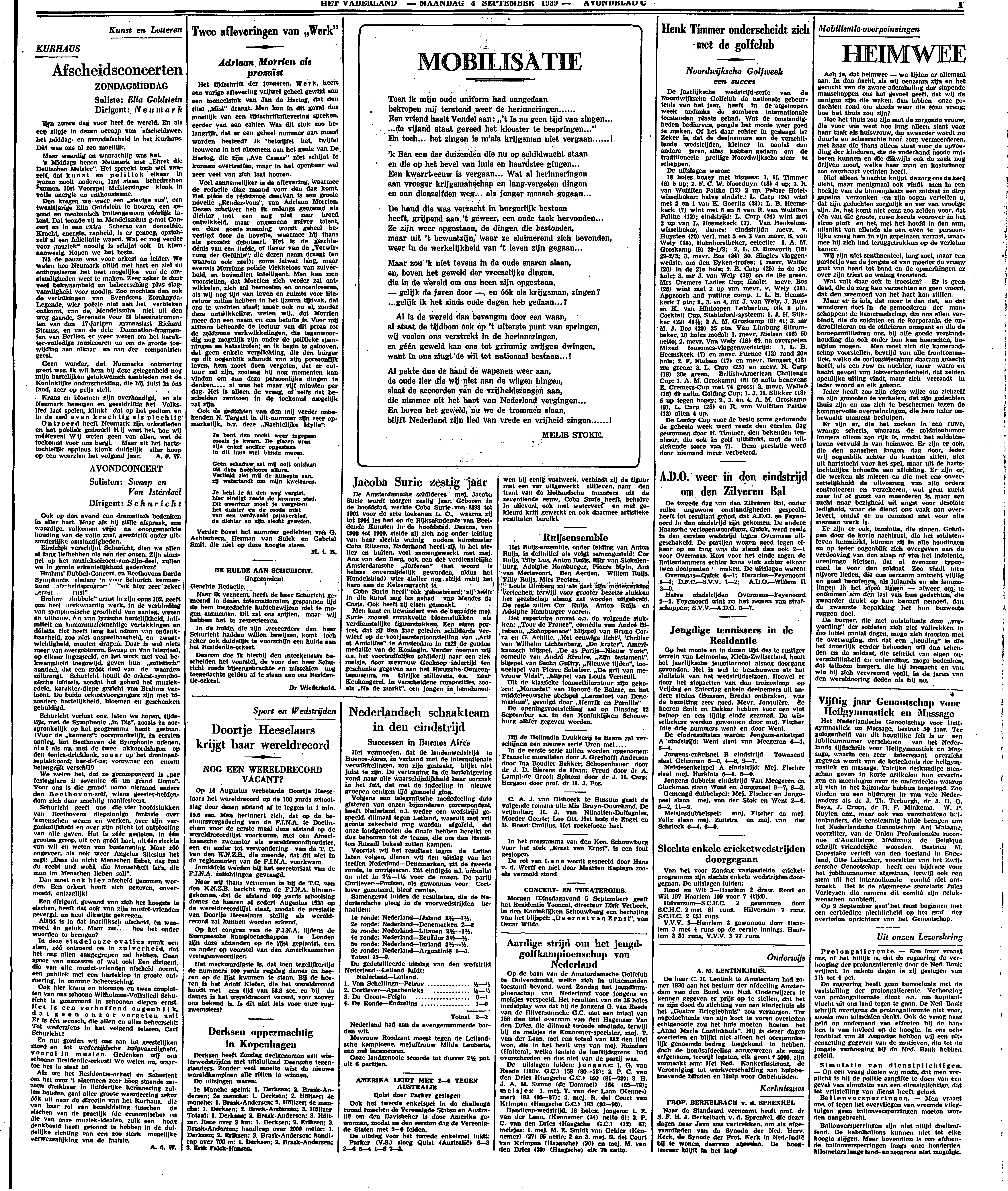 Veel aannemelijker is de aflevering, waarmee de redactie deze maand voor den dag komt. Het pièce de résistance daarvan is een groote novelle ‘Rendez-vous’, van Adriaan Morrien. Dezen schrijver heb ik onlangs genoemd als dichter met een nog niet zeer breed ontwikkeld, maar ongemeen zuiver talent, en deze goede meening wordt geheel bevestigd door de novelle, waarmee hij thans als prozaïst debuteert. Het is de geschiedenis van een liefde, of liever van de ‘Verwirrung der Gefühle’, die dezen naam draagt (en waarom ook niet); soms ietwat lang, maar evenals Morriens poëzie vlekkeloos van zuiverheid, en bovendien intelligent. Men kan zich voorstellen, dat Morrien zich verder zal ontwikkelen, zich zal besnoeien en concentreeren, als wij nog tijd van leven en ruimte voor literatuur zullen hebben in het ijzeren tijdvak, dat ons te wachten staat; maar ook nu al, zonder deze ontwikkeling, weten wij,, dat Morrien meer dan een naam en een belofte is. Voor mij althans behoorde de lectuur van dit proza tot de zeldzame verkwikkelingen, die tegenwoordig nog mogelijk zijn onder de politieke spanningen en katastrofen; en ik begin te gelooven, dat geen enkele verplichting, die den burger op dit oogenblik afhoudt van zijn persoonlijk leven, hem moet doen vergeten, dat er cultuur zal zijn, zoolang hij nog momenten kan vinden om aan deze persoonlijke dingen te denken.... al was het maar vijf minuten per dag. Het is alleen de vraag, of zelfs dat bescheiden rantsoen in de toekomst mogelijk zal zijn.