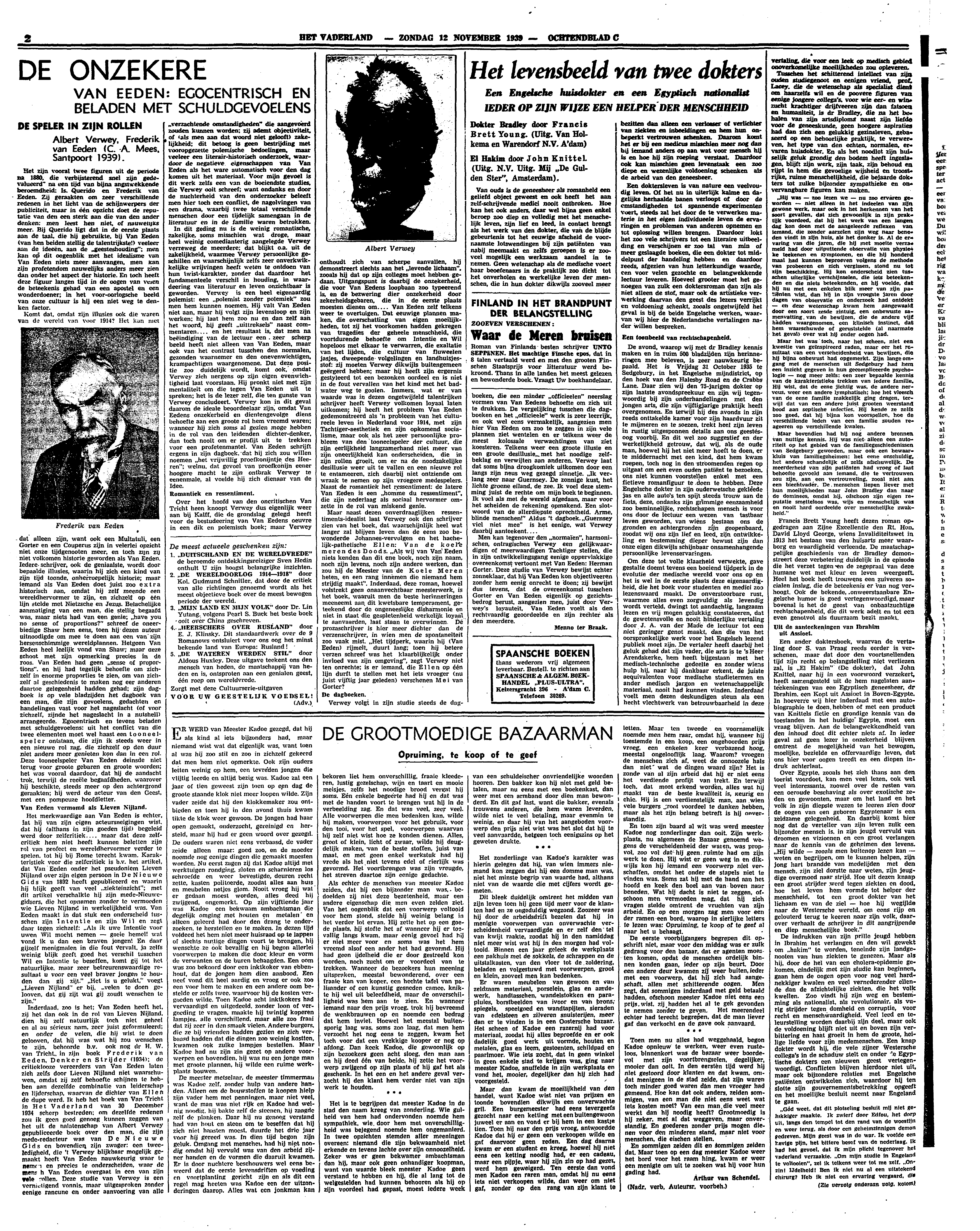 Inderdaad, zoo is het; Van Eeden heeft het, zij het dan ook in de rol van Lieven Nijland, dien hij zelf natuurlijk toch niet geheel een al au sérieux nam, zeer juist geformuleerd; en onder de velen, die hij wist te doen gelooven, dat hij was wat hij zou wenschen te zijn, behoorde b.v. ook nog dr H.W. van Tricht,, in zijn boek Frederik van Eeden, Denker en Strijder (1934); de critieklooze vereerders van Van Eeden laten zich zelfs door Lieven Nijland niet waarschuwen, omdat zij zelf behoefte schijnen te hebben aan dezelfde combinatie van leiderschap en lijderschap, waarvan de dichter van Ellen de dupe werd. Ik heb het boek van Van Tricht in Het Vaderland van 30 December 1934 scherp bestreden; om dezelfde redenen zou ik geen goed genoeg kunnen zeggen van het uit de nalatenschap van Albert Verwey gepubliceerde boek over den man, die zijn mede-redacteur was van De Nieuwe Gids en bovendien zijn zwager; een tweeledigheid, die 't Verwey blijkbaar mogelijk gemaakt heeft Van Eeden nauwkeurig waar te nemen en precies te onderscheiden, waar de mensch Van Eeden overgaat in een van zijn vele rollen. Deze studie van Verwey is een vernietigend vonnis, maar uitgesproken zonder eenige rancune en onder aanvoering van alle ‘verzachtende omstandigheden’ die aangevoerd zouden kunnen worden; zij ademt objectiviteit, of (als men aan dat woord niet gelooft) zakelijkheid; dit betoog is geen bestrijding met vooropgezette polemische bedoelingen, maar veeleer een literair-historisch onderzoek, waardoor de negatieve, eigenschappen van Van Eeden als het ware automatisch voor den dag komen uit het materiaal. Voor mijn gevoel is dit werk zelfs een van de boeiendste studies, die Verwey ooit schreef; want ondanks en door de nuchterheid van den onderzoeker beleeft men hier toch een conflict, de nagolvingen van een drama, waarbij twee totaal verschillende menschen door een tijdelijk samengaan in de literatuur en in de familie waren betrokken.