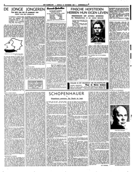 Groote verrassingen heb ik onder de talrijke dichters niet kunnen ontdekken; experimenten en beloften zijn er meer dan genoeg. Voor het essay komen alleen D.A. de Graaf en Arthur van Rantwijk op, de laatste met een knap opstel over het half-weten, dat niet alleen maar een artikel is, maar werkelijke essayistische begaafdheid verraadt. De evenmin talrijke prozaïsten zijn Adriaan van der Veen (niet slecht vertegenwoordigd door Wedren in de Donkere kamer), C.C.S. Crone (sympathiek, maar niet bijzonder), Anna Blaman (wel curieus, maar te lang, te veel korte-zinnetjes-nadrukkelijkheid). Hanno van Wagenvoorde (improvisaties van litteratuur), Jan Schepens (Londensche impressies) en Pierre Dubois (De Meidoorn).