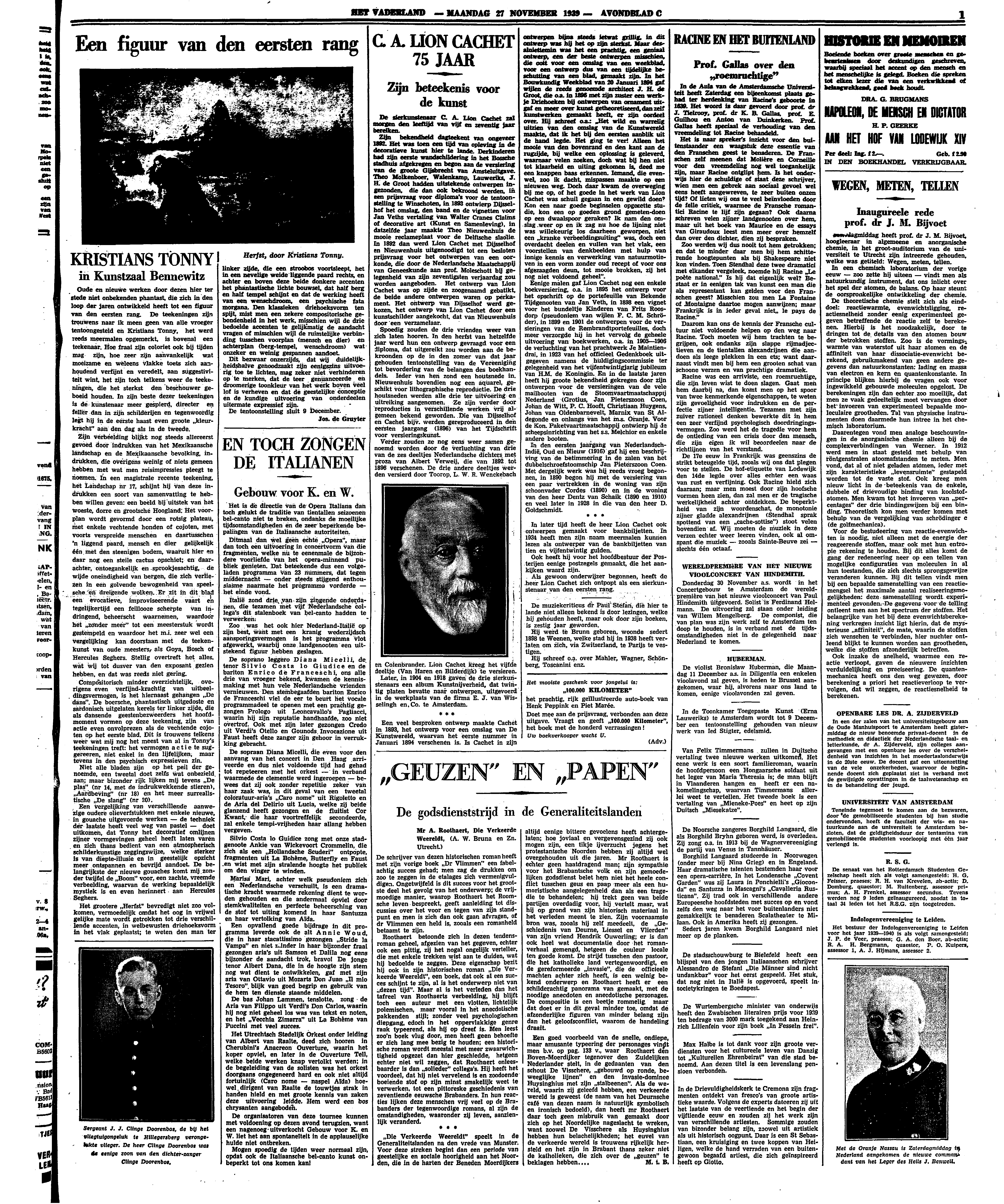 De schrijver van dezen historischen roman heeft met zijn vorige boek ‘Dr Vlimmen’ een fabelachtig succes gehad; men zag de drukken om zoo te zeggen in de etalages zich vermenigvuldigen. Ongetwijfeld is dit succes voor het grootste deel het gevolg van het onderwerp; de vrijmoedige manier, waarop Roothaert het Roomsche leven bespreekt, geeft aanleiding tot discussies over het voor en tegen van zijn standpunt en men is zich dan ook gaan afvragen, of dr Vlimmen een held is, zooals een romanheld betaamt te zijn.