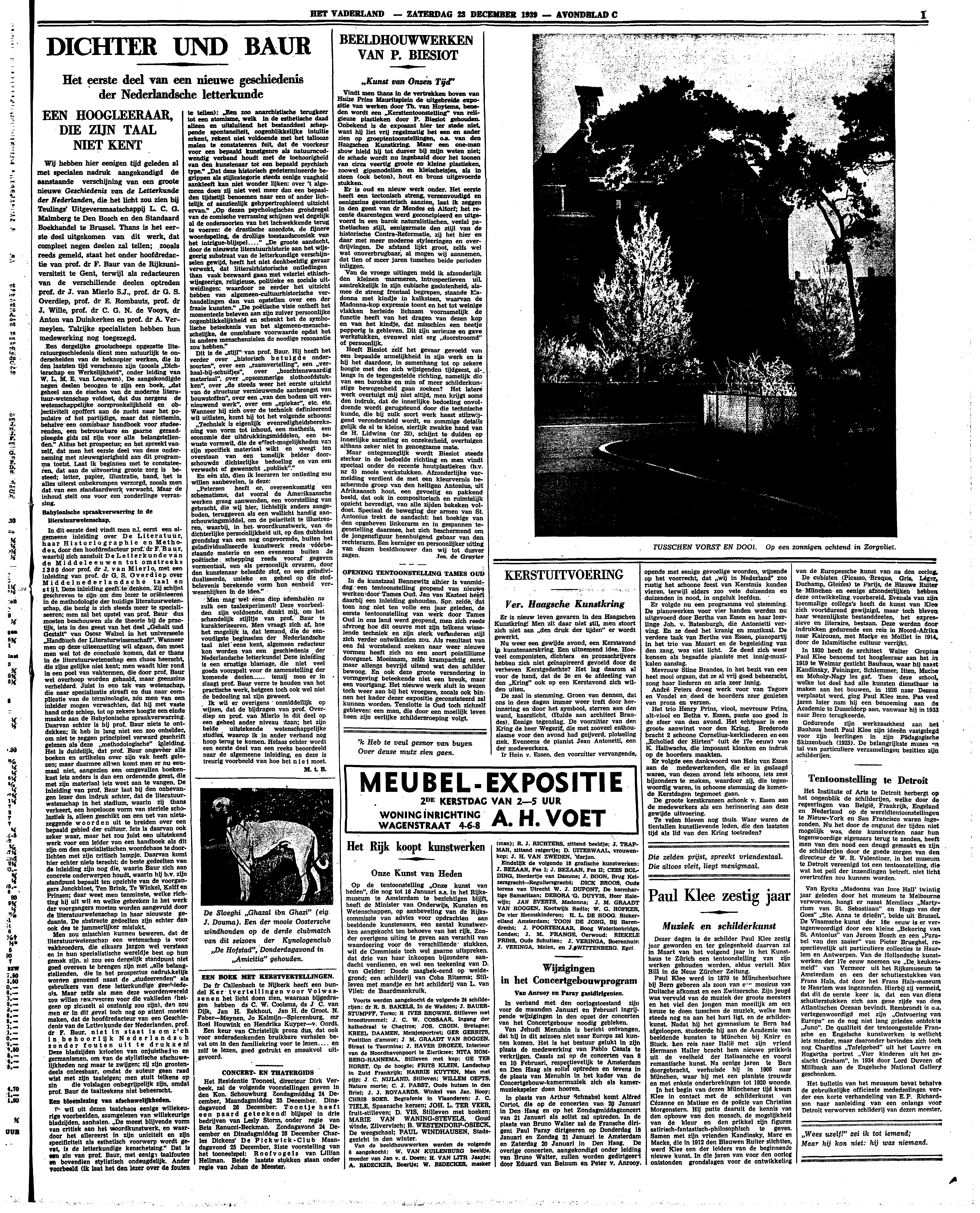 Wij hebben hier eenigen tijd geleden al met specialen nadruk aangekondigd de aanstaande verschijning van een groote nieuwe Geschiedenis van de Letterkunde der Nederlanden, die het licht zou zien bij Teulings' Uitgeversmaatschappij L.C.G. Malmberg te Den Bosch en den Standaard Boekhandel te Brussel. Thans is het eerste deel uitgekomen van dit werk, dat compleet negen deelen zal tellen; zooals reeds gemeld, staat het onder hoofdredactie van prof. dr F. Baur van de Rijksuniversiteit te Gent, terwijl als redacteuren van de verschillende deelen optreden prof. dr J. van Mierlo S.J., prof. dr G.S. Overdiep, prof. dr E. Rombauts, prof. dr J. Wille, prof. dr C.G.N. de Vooys, dr Anton van Duinkerken en prof. dr A. Vermeylen. Talrijke specialisten hebben hun medewerking nog toegezegd.