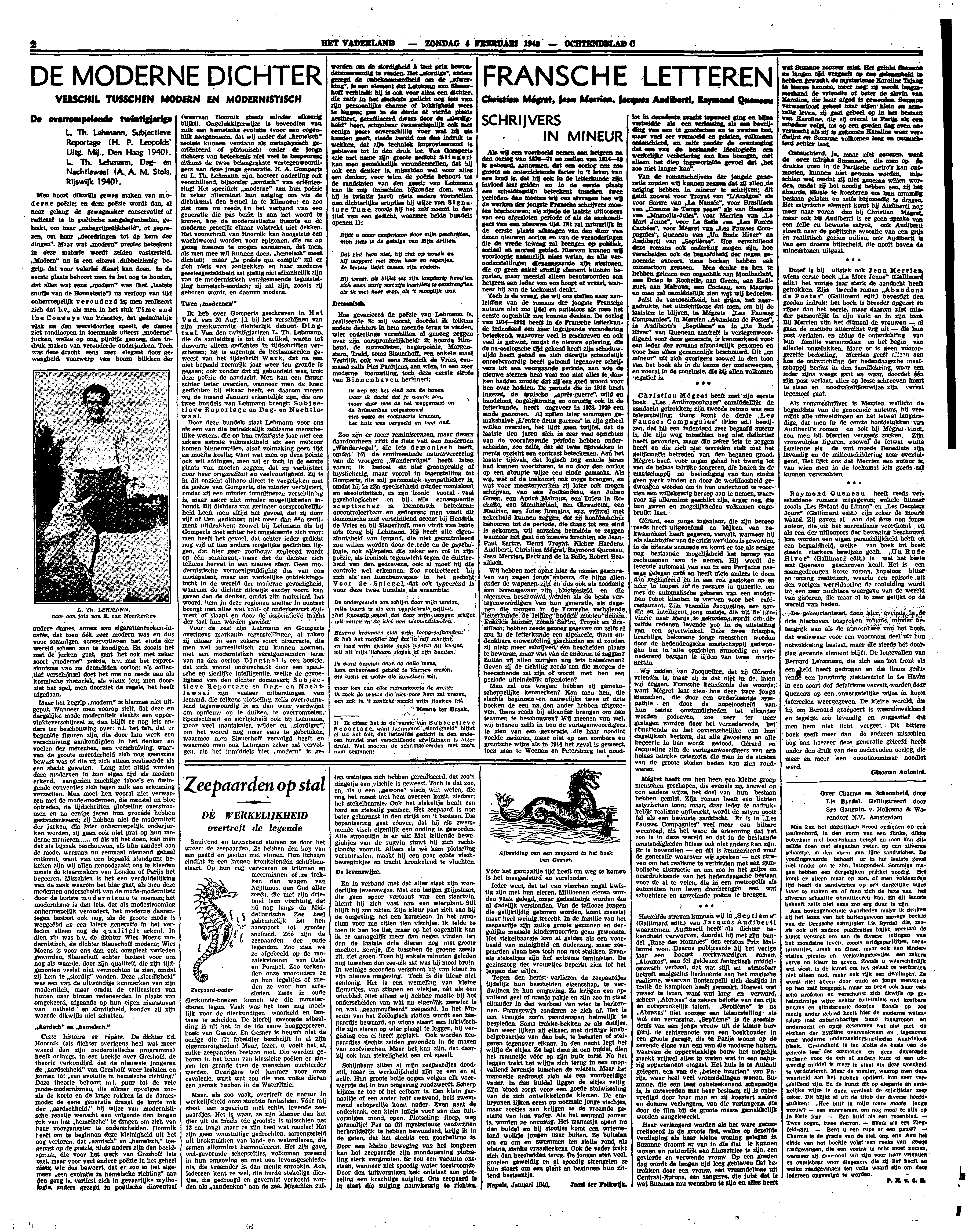 L.Th. Lehmann, Subjectieve Reportage (H.P. Leopolds' Uitg. Mij., Den Haag 1940). L.Th. Lehmann, Dag- en Nachtlawaai (A.A.M. Stols, Rijswijk 1940).
