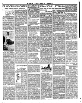 Men hoort dikwijls gewag maken van moderne poëzie; en deze poëzie wordt dan, al naar gelang de gewagmaker conservatief of radicaal is in poëtische aangelegenheden, gelaakt, om haar ‘onbegrijpelijkheiid’, of geprezen, om haar ‘doordringen tot de kern der dingen’. Maar wat ‘modern’ precies beteekent in deze materie wordt zelden vastgesteld. ‘Modern’ nu is een uiterst dubbelzinnig begrip, dat voor velerlei dienst kan doen. In de eerste plaats behoort men in het oog te houden, dat alles wat eens ‘modern’ was (het ‘laatste snufje van de Bonneterie’) na verloop van tijd onherroepelijk verouderd is; men realiseert zich dat b.v., als men in het stuk Time and the Conways van Priestley, dat gedeeltelijk vlak na den wereldoorlog speelt, de dames ziet rondloopen in toenmaals uiterst ‘moderne’ jurken, welke op ons, pijnlijk genoeg, den indruk maken van verouderde onderjurken. Toch was deze dracht eens zeer elegant door gewaagheid, voorwerp van booze blikken der oudere dames, annex aan sigarettenrooken-incafés, dat toen óók zeer modern was en dus voor sommigen conservatieven het einde der wereld scheen aan te kondigen. En zooals het met de jurken gaat, gaat het ook met zeker soort ‘moderne’ poëzie, b.v. met het expressionisme van na denzelfden oorlog; als collectief verschijnsel doet het ons nu reeds aan als kosmische rhetoriek, als vieux jeu; men doorziet het spel, men doorziet de regels, het heeft afgedaan.