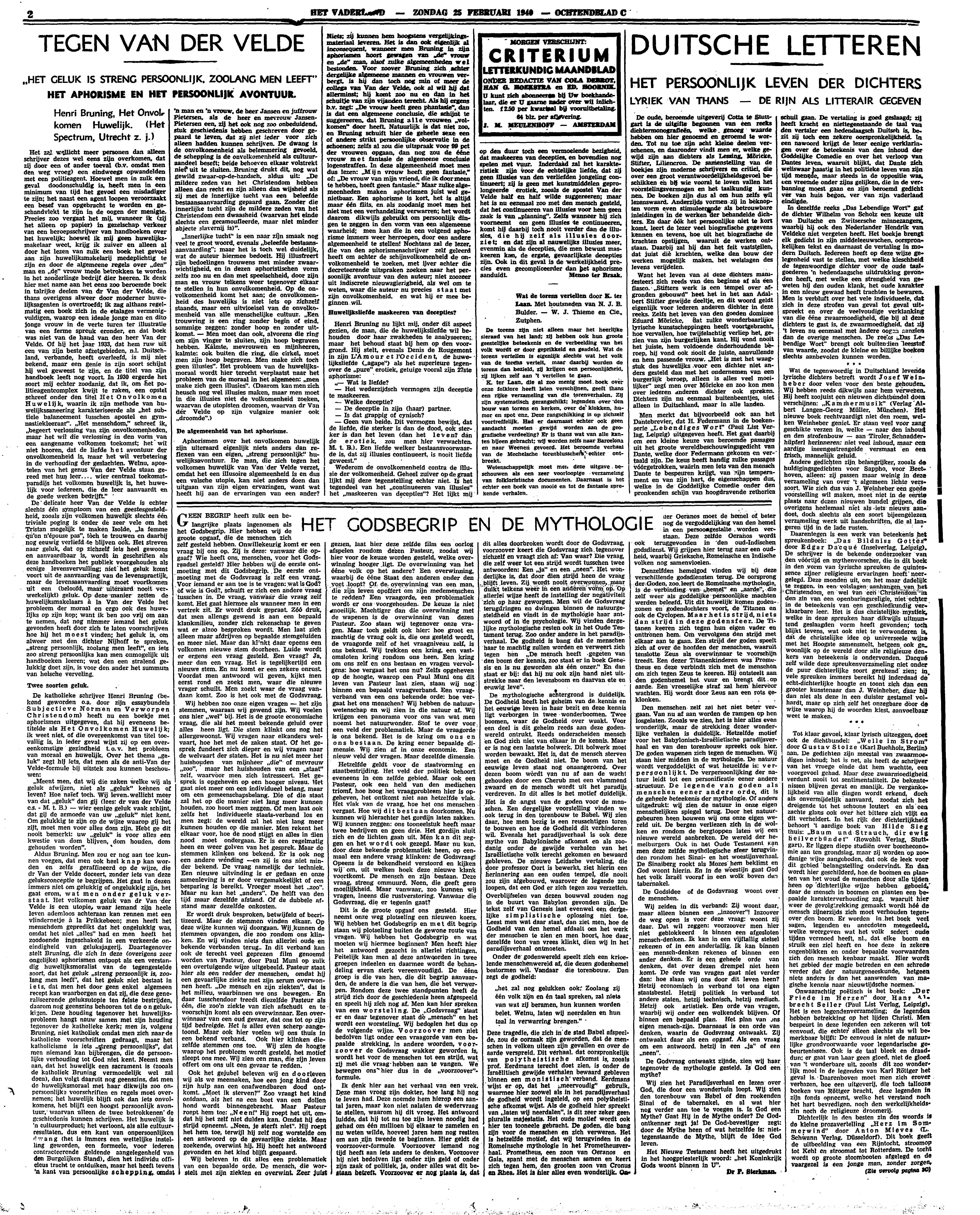 De katholieke schrijver Henri Bruning (bekend geworden o.a. door zijn essaybundels Subjectieve Normen en Verworpen Christendom) heeft nu een boekje met aphorismen uitgegeven, dat hij eveneens betitelde als Het Onvolkomen Huwelijk; ik weet niet, of die overeenkomst van titel toevallig is, in ieder geval wijst zij op een overeenkomstige gezindheid t.o.v. het probleem van moraal en huwelijk. Over het thema ‘geluk’ zegt hij iets, dat men als de anti-Van der Velde-formule bij uitstek zou kunnen beschouwen: