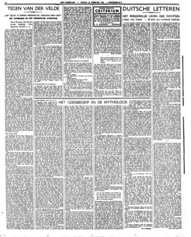 De delicate heer Van der Velde is echter slechts één symptoom van een geestesgesteldheid, zooals zijn volkomen huwelijk slechts één triviale poging is onder de zeer vele om het Tristan mogelijk te maken Isolde, ‘la femme qu'on n'épouse pas’, tòch te trouwen en daarbij nog eeuwig verliefd te blijven ook. Het streven naar geluk, dat op zichzelf iets heel gewoons en aanvaardbaar is, wordt in geschriften als deze handboeken het publiek voorgehouden als eenige levensvervulling; niet het geluk komt voort uit de aanvaarding van de levenspractijk, maar de levensaanvaarding moet voortkomen uit een (beloofd, maar uiteraard nooit verwerkelijkt) geluk. Op deze manier zetten de huwelijksmakelaars à la Van der Velde het probleem der moraal en ergo ook des huwelijks op zijn kop; want ik ben zoo vrij om aan te nemen, dat nog nimmer iemand het geluk gevonden heeft door zich te laten voorschrijven hoe hij het moest vinden; het geluk is, om alweer met den dichter Nijhoff te spreken, ‘streng persoonlijk, zoolang men leeft’, en iets zoo streng persoonlijks kan men onmogelijk uit handboeken leeren; wat den een stralend gelukkig doet zijn, is voor den ander het summum van helsche verveling.