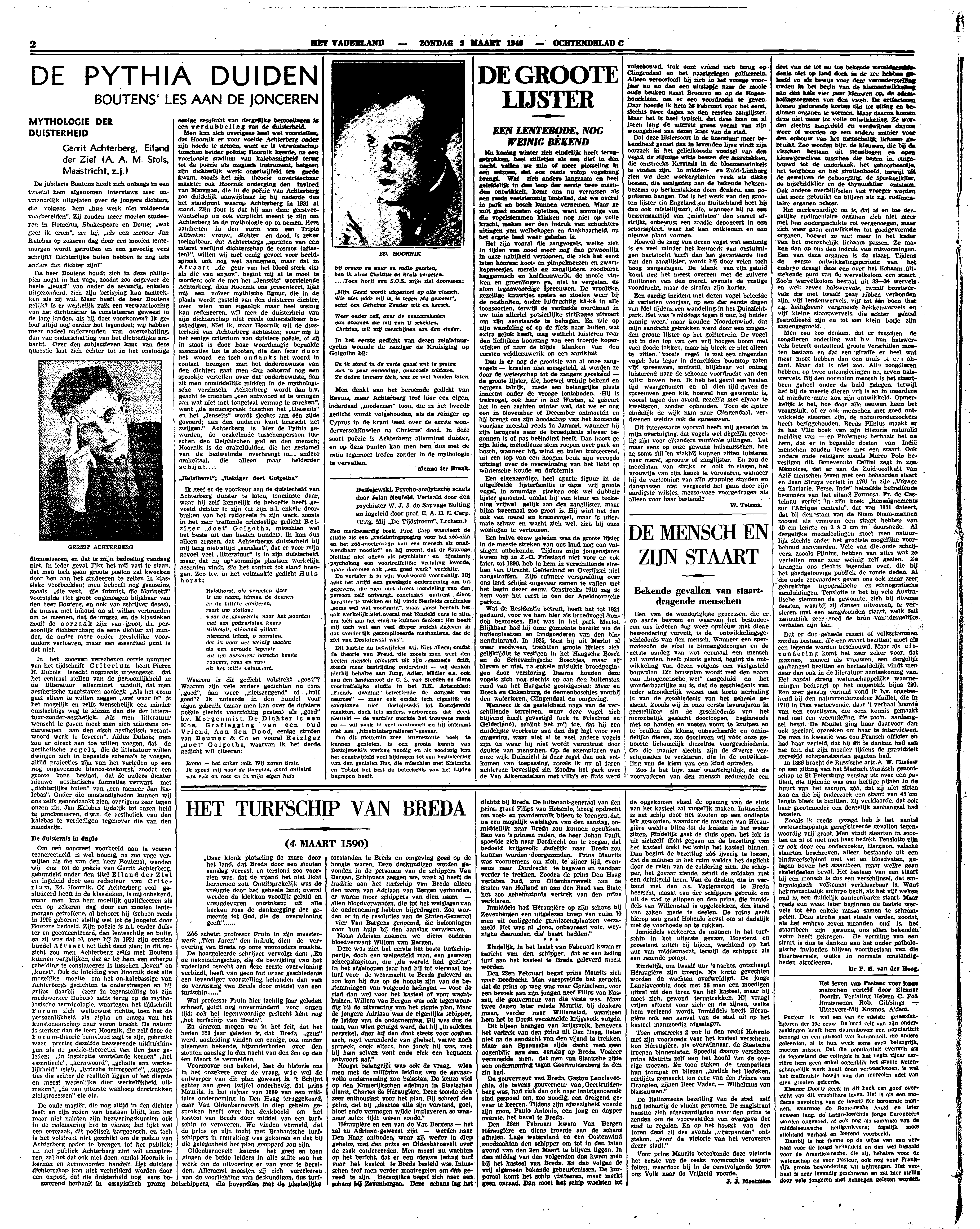 In het zooeven verschenen eerste nummer van het tijdschrift Criterium heeft Pierre H. Dubois terecht nogmaals uiteengezet, dat het centraal stellen van de persoonlijkheid in de litteratuur allerminst uitsluit, dat men aesthetische maatstaven aanlegt: ‘Als het erom gaat alleen te willen zeggen “wat waar is” is het mogelijk en zelfs wenschelijk een minder omslachtige weg te kiezen dan die der litteratuur-zonder-aesthetiek. Als men litteratuur wenscht te geven moet men zich minstens onderwerpen aan den eisch aesthetisch verantwoord werk te leveren’. Aldus Dubois; men zou er direct aan toe willen voegen, dat de aesthetische regels, die de litteratuur willen dwingen zich in bepaalde schema's te voegen, altijd projecties zijn van het verleden op een nog ongevormde blanco-toekomst, zoodat een groote kans bestaat, dat de oudere dichter nieuwe aesthetische formaties verwart met ‘dichterlijke buien’ van ‘een meneer Jan Kalebas’. Onder die omstandigheden kunnen wij ons zelfs genoodzaakt zien, overigens zeer tegen onzen zin, Jan Kalebas tijdelijk tot onzen held te proclameeren, d.w.z. de aesthetiek van den kalebas te verdedigen tegenover die van den mandarijn.