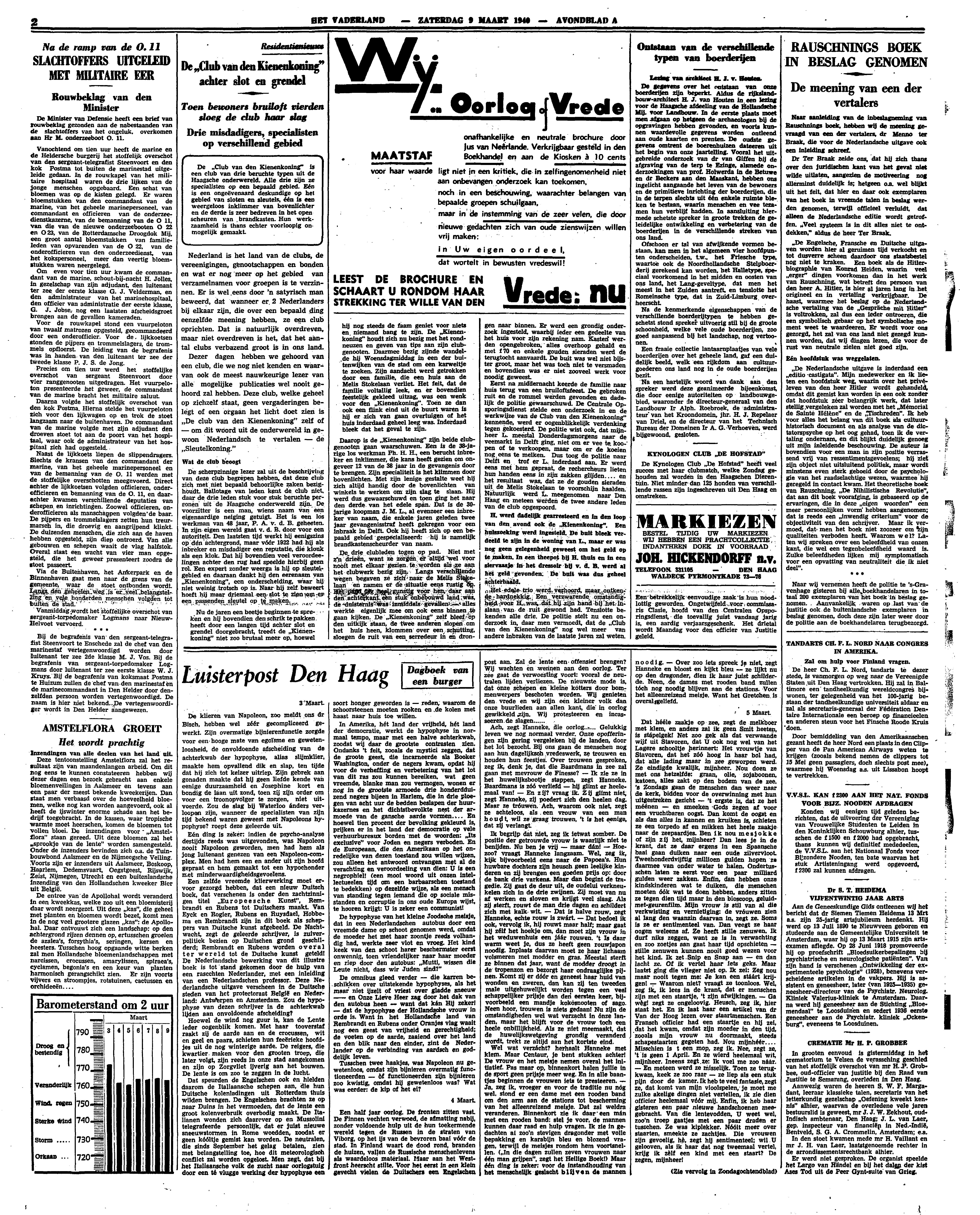 ‘De Engelsche, Fransche en Duitsche uitgaven worden hier al geruimen tijd verkocht en tot dusverre scheen daardoor ons staatsbestel nog niet te kraken. Een boek als de Hitlerbiographie van Konrad Heiden, waarin veel ‘erger’ dingen voorkomen dan in het werk van Rauschning, wat betreft den persoon van den heer A. Hitler, is hier al jaren lang in het origineel en in vertaling verkrijgbaar. De haast, waarmee het beslag op de Nederlandsche vertaling van de ‘Gespräche mit Hitler’ is voltrokken, zal dus een ieder ontroeren, die een symbolisch gebaar op het symbolische moment weet te waardeeren. Er wordt voor ons gezorgd, het zal van ons land niet gezegd kunnen worden, dat wij dingen lezen, die voor de rust van neutrale zielen niet goed zijn.