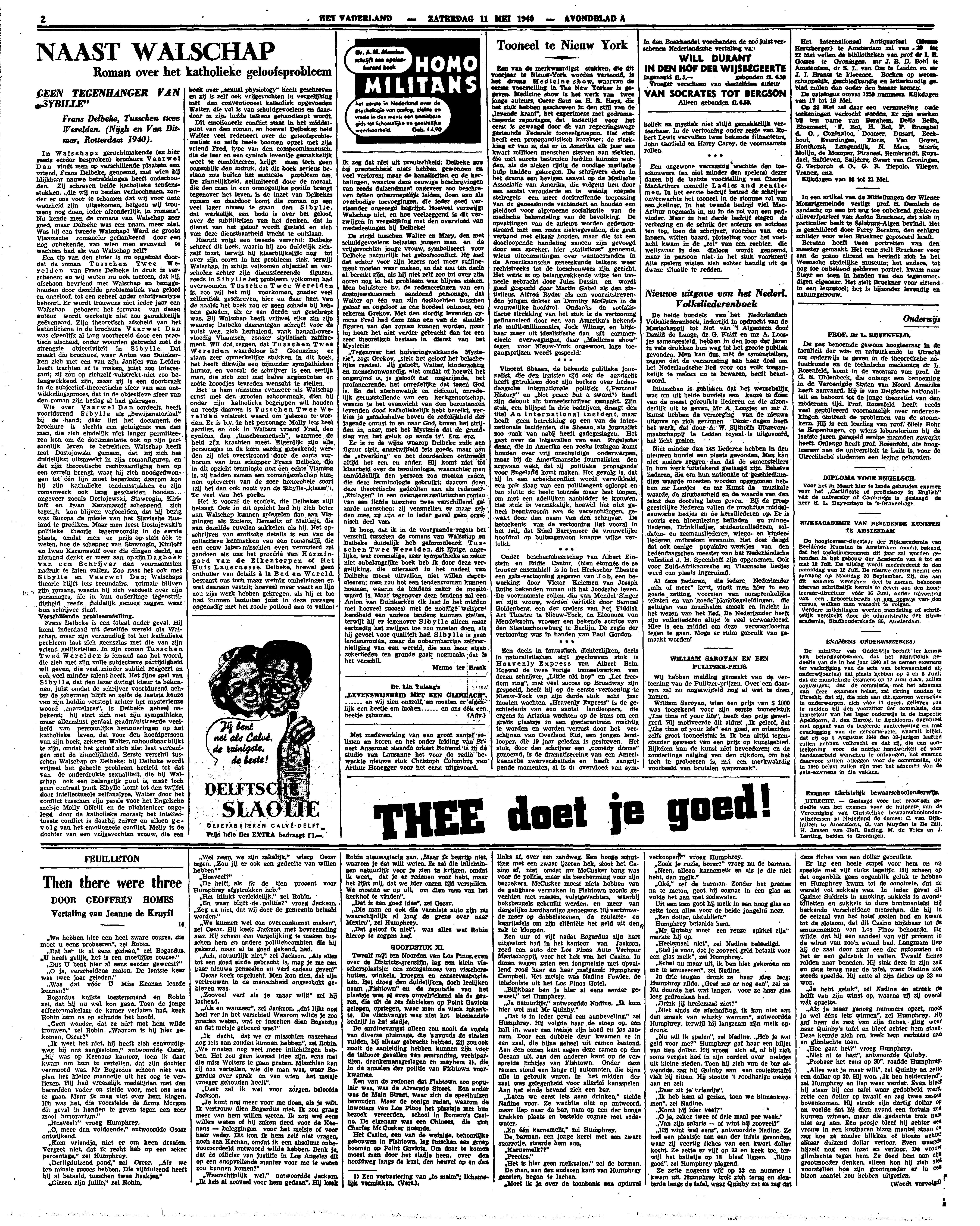 Het is hem minstens evenzeer als Walschap ernst met den grooten schoonmaak, dien hij onder zijn katholieke begrippen wil houden en reeds daarom is Tusschen Twee Werelden volstrekt waard om gelezen te worden. Er is b.v. in het personage Molly iets heel aardigs, en ook in Walters vriend Fred, den cynicus, den ‘tusschenmensch’, waarmee de held zijn krachten meet. Eigenlijk zijn alle personages in de kern aardig geteekend; werden zij niet overstroomd door de copia verborum van hun schepper Frans Delbeke, die in dit opzicht tenminste nog een echte Vlaming is, zij hadden samen een romangezelschap kunnen opleveren van de zeer honorabele soort (zij het dan ook nooit van de Sibylle-‘klasse’).