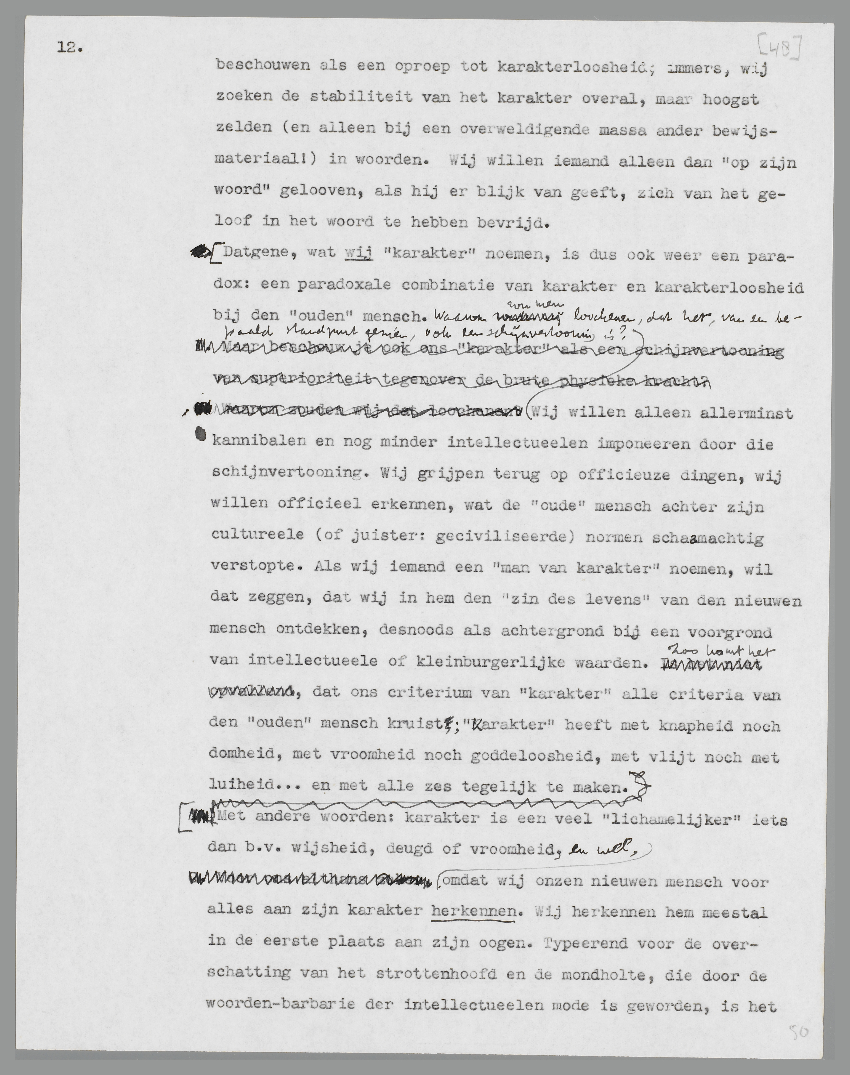 Datgene, wat wij karakter noemen, is dus een paradoxale combinatie van karakter en karakterloosheid volgens de normentafel der ‘oude’ hiërarchie. Als dit paradoxale karakter dus ook een schijnvertooning is, wil die schijnvertooning toch allerminst