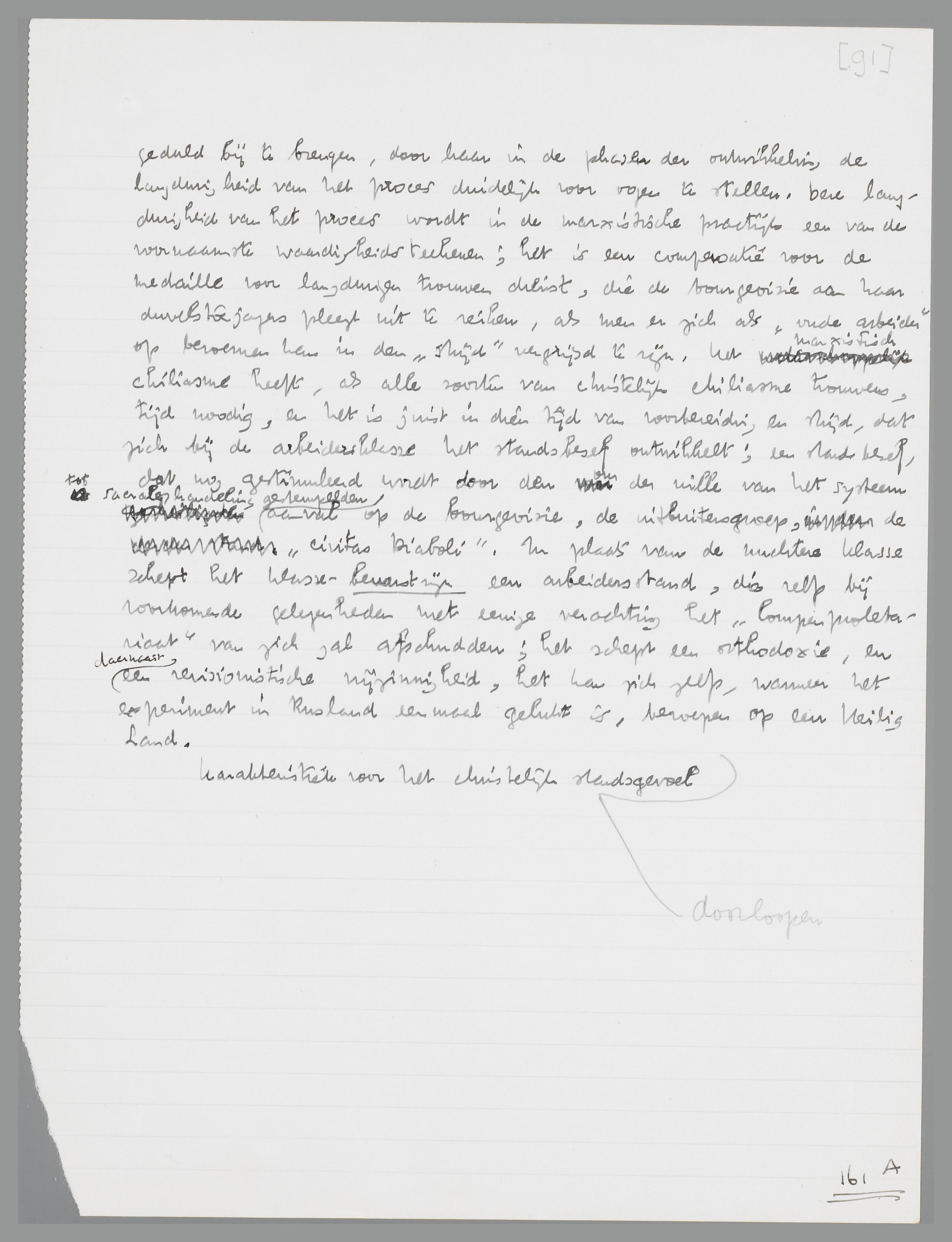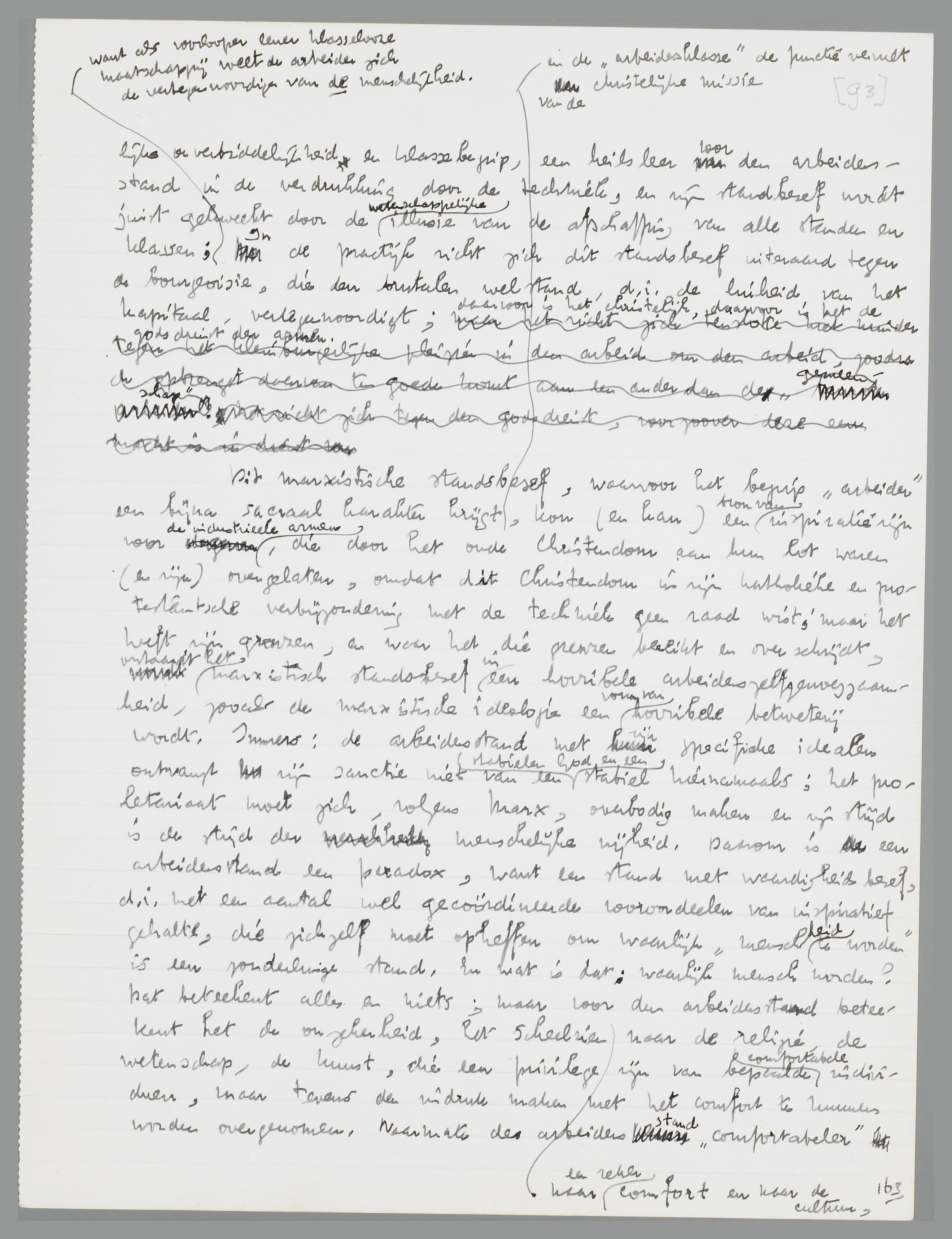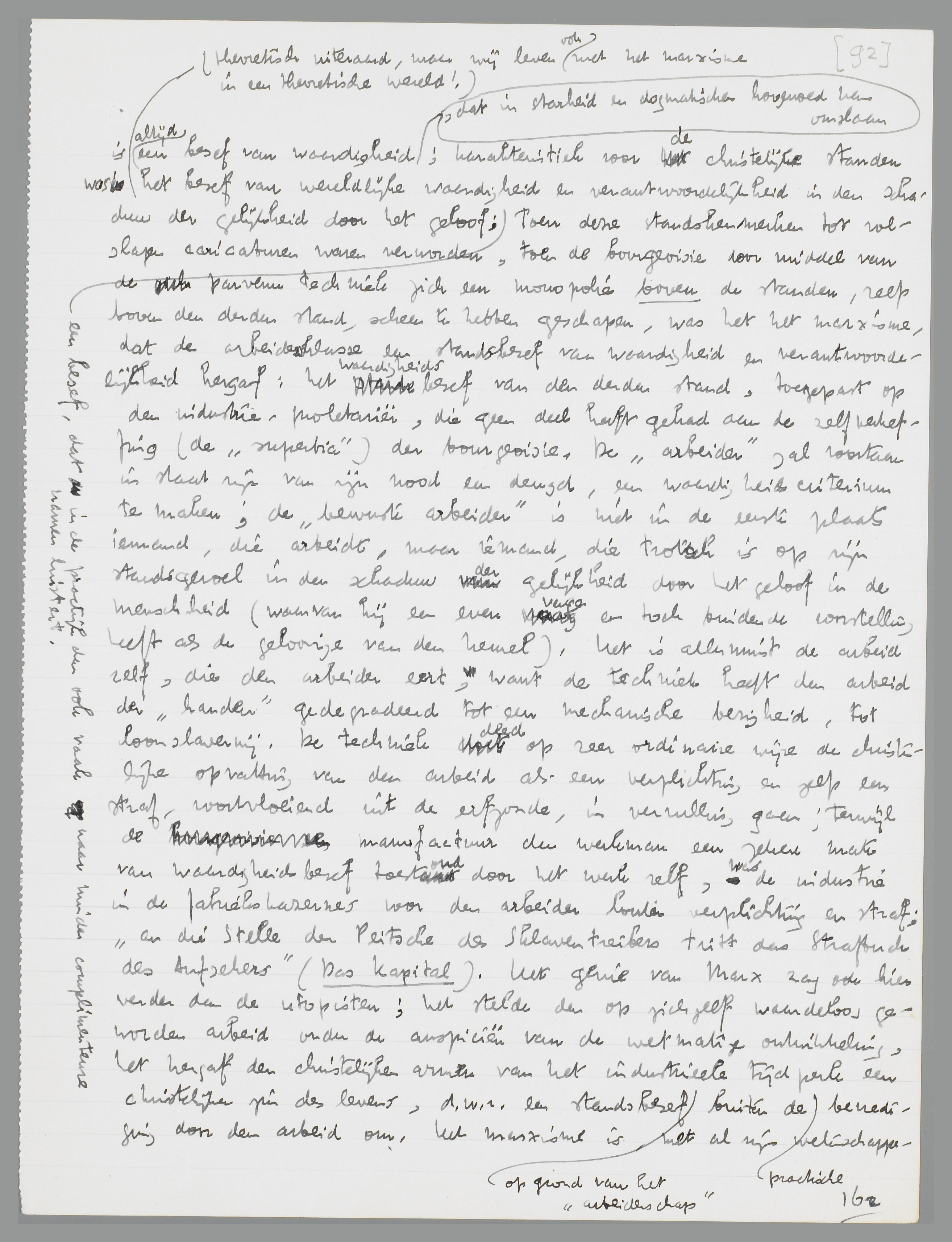 Dit marxistische standsbesef, waarvoor het begrip ‘arbeider’ een bijna sacraal karakter krijgt en de ‘arbeiderklasse’ de functie vervult van de christelijke missie, kon (en kan) een bron van inspiratie zijn voor de industrieele armen, die door het oude Christendom aan hun lot waren (en zijn) overgelaten, omdat dit Christendom in zijn katholieke en protestantsche verbijzondering met de techniek geen raad wist; maar het heeft zijn grenzen,