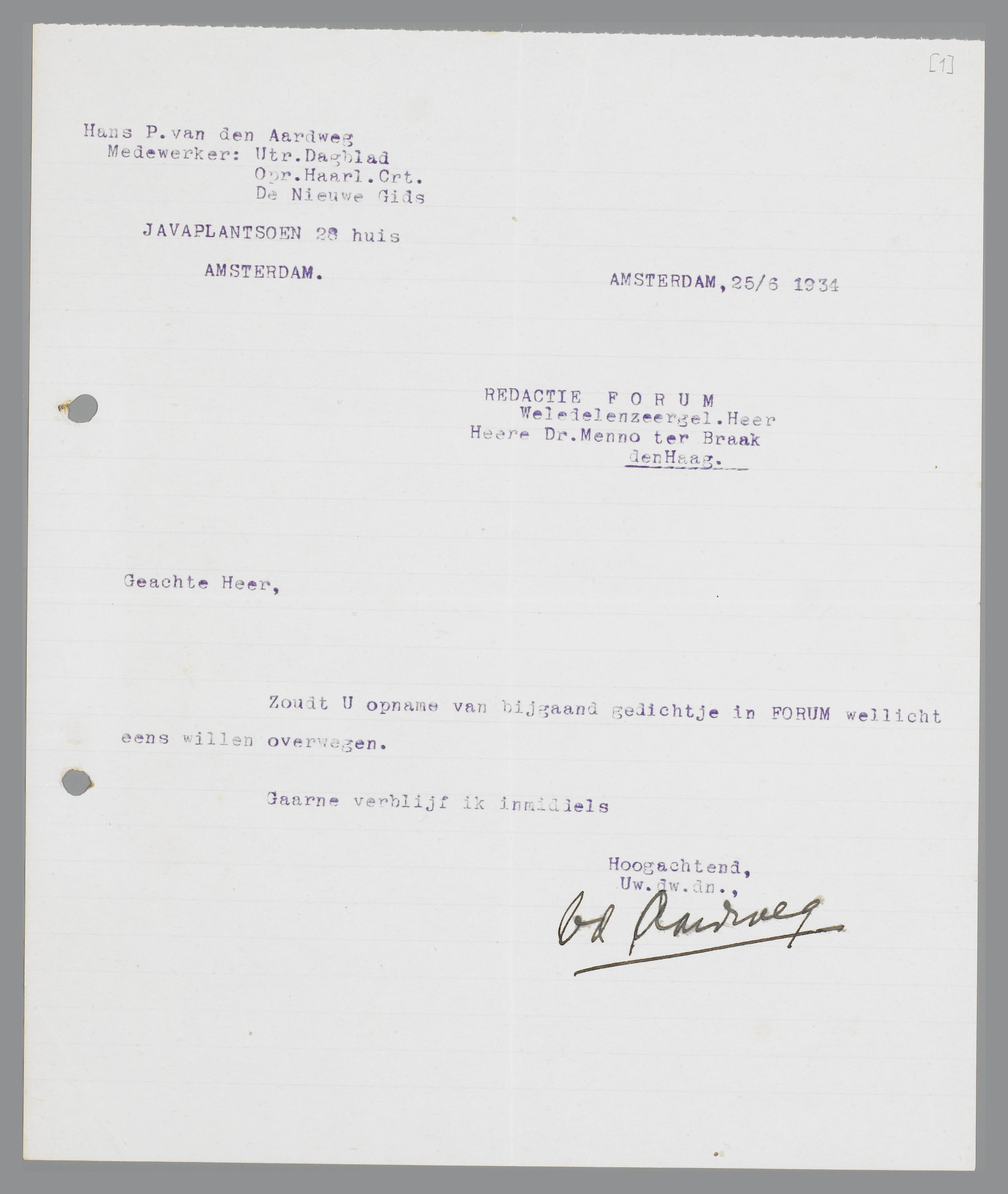 Briefwisseling Menno ter Braak - H.P. van den Aardweg