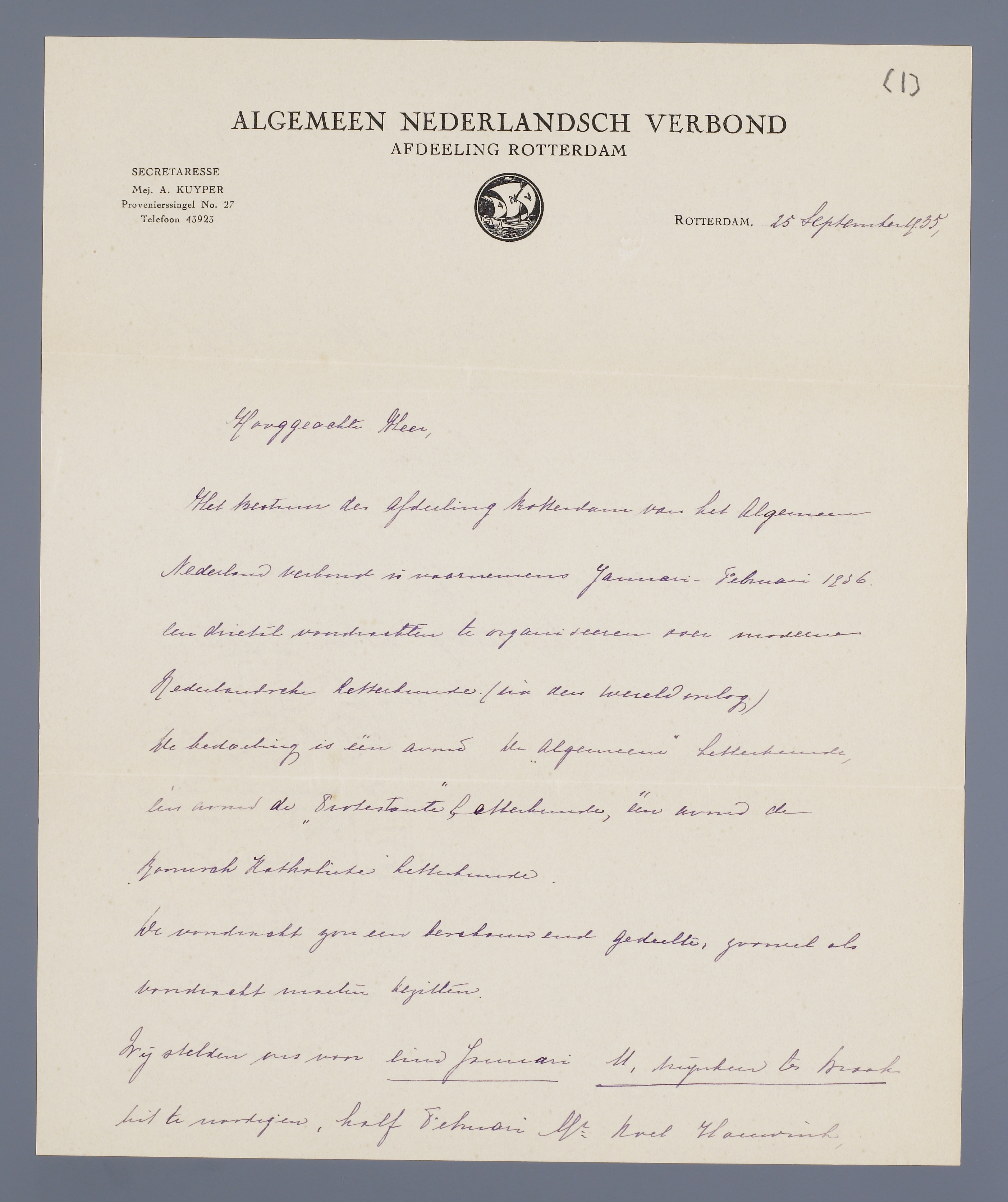Briefwisseling Menno ter Braak - Algemeen Nederlandsch Verbond, afdeeling Rotterdam