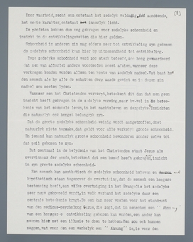 Voorop staat de beleving van het wonder van het leven, van den levenden God. God is leven. Dit leven wordt dan in zyn wezen als geesteyk beseft; God is geest. De religieuze beleving. Daarnaast staat dan centraal het zedelyke en nu wil ik my tot het laatste beperken.