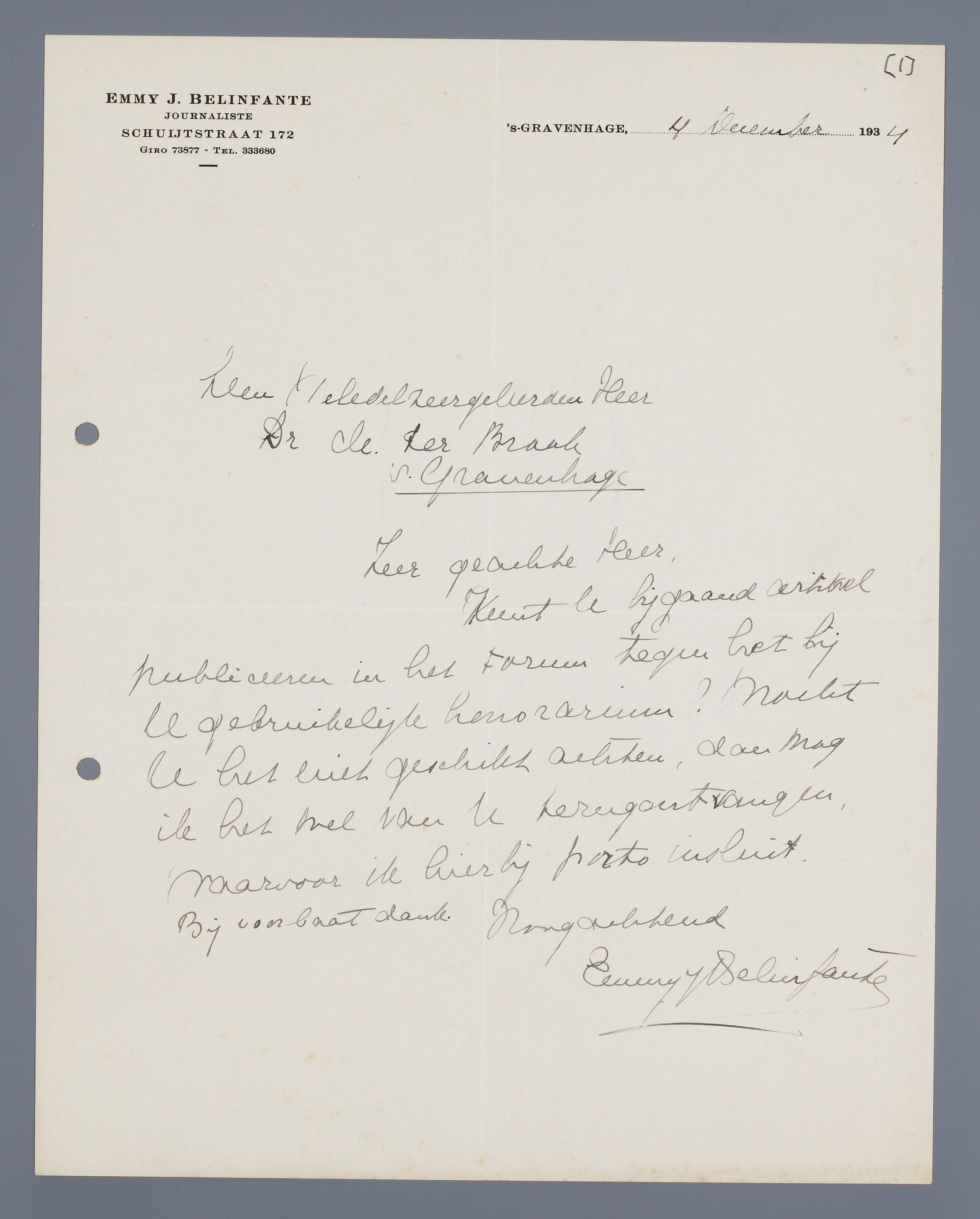 Briefwisseling Menno ter Braak - Emmy J. Belinfante
