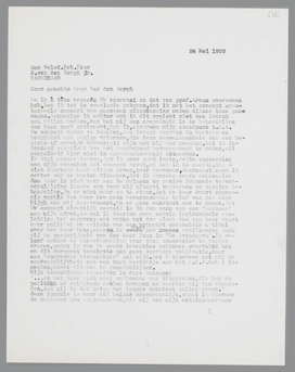 Nu ik à tête reposée Uw voorstel en dat van prof. Kraus overwogen heb, ben ik tot de conclusie gekomen, dat ik met het concept grootendeels accoord kan gaan; een uitzondering maken alleen twee passages. Aangezien ik echter ook in dit opzicht niet den indruk zou willen wekken, dat het mij aan soepelheid in de behandeling van deze zaak ontbreekt, heb ik, alvorens mijn standpunt t.o.v. Uw concept nader te bepalen, den inhoud daarvan in vertrouwen besproken met eenige vrienden, die deze aangelegenheid van den beginne af gevolgd hebben; zij zijn met mij van meening, dat ik inderdaad verplicht ben het voorbehoud bovengenoemd te maken, wil soepelheid hier niet in karakterloosheid ontaarden.
