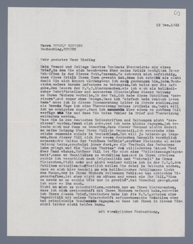 Nicht um mich zu entschuldigen, sondern nur um Ihnen klarzumachen, dass ich mich gewissenhaft mit Ihren Büchern befasst habe, schreibe ich Ihnen diesen Brief. Inzwischen habe ich die N.R.C. gebeten eine Gegenkritik mit meiner Unterschrift aufzunehmen; die Redaktion aber hat prinzipielle Beschwerde dagegen, so dass ich Ihnen in dieser Hinsicht leider nicht helfen kann.