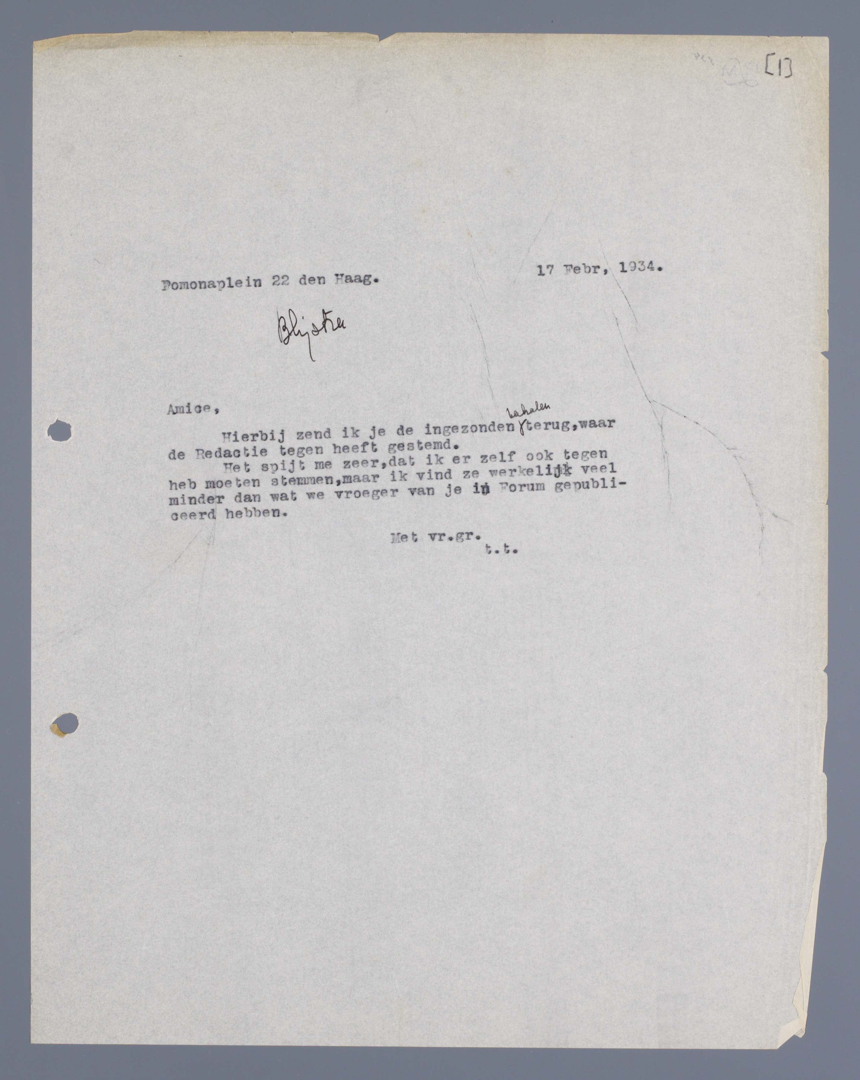 Het spijt me zeer, dat ik er zelf ook tegen heb moeten stemmen, maar ik vind ze werkelijk veel minder dan wat we vroeger van je in Forum gepubliceerd hebben.