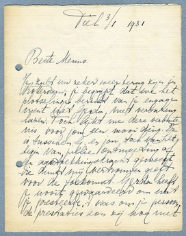 Groeten van ons beiden. Schrijf dus eens gauw. Hoe is het met G's gezondheid? Zijn die hoofdpijnen over? Alles goeds dus in 1931.