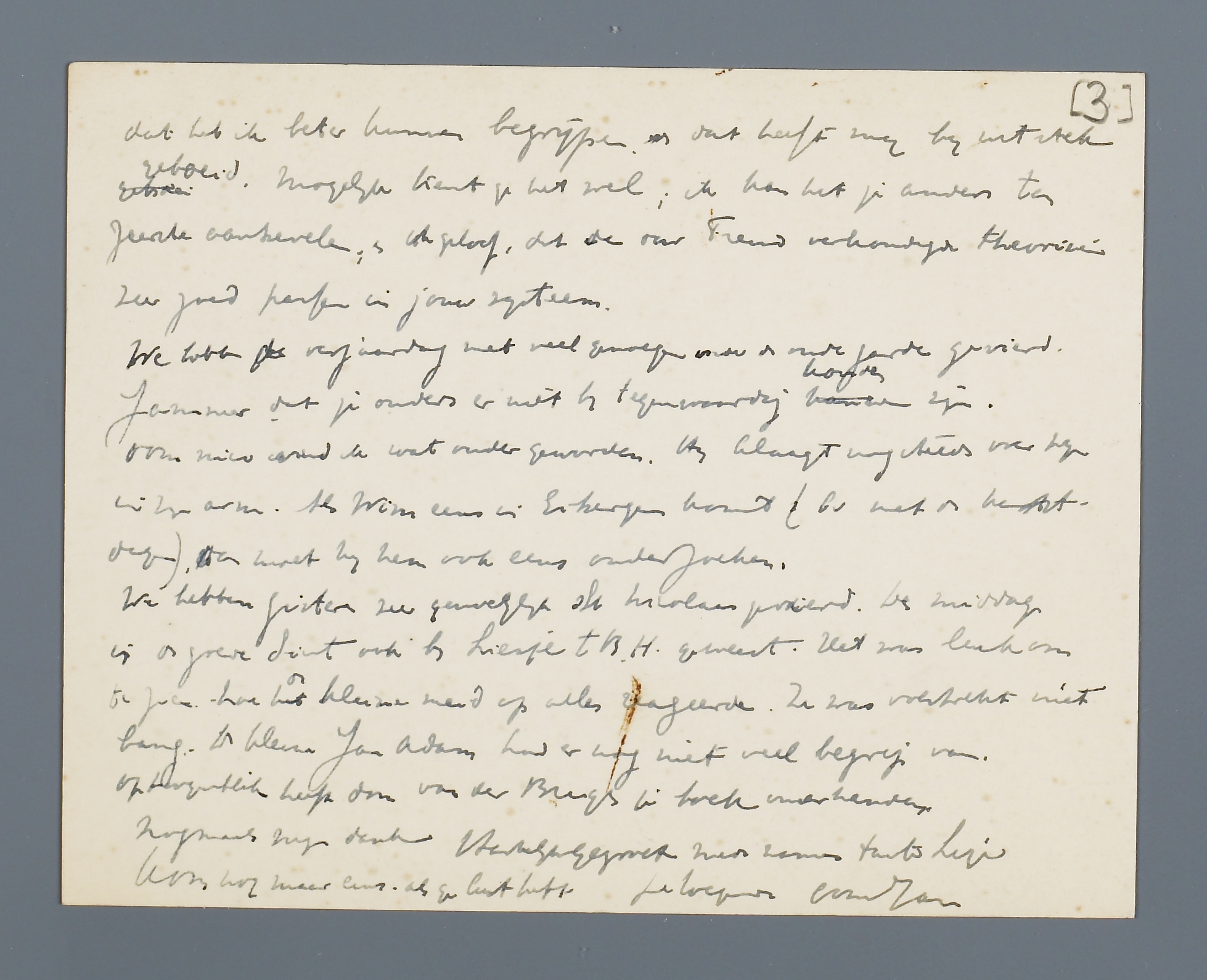 Van oom Nico heb ik gekregen een boek van Stephan Zweig over Freud dat heb ik beter kunnen begrijpen, en dat heeft mij bij uitstek geboeid. Mogelijk kent ge het wel; ik kan het je anders ten zeerste aanbevelen; ik geloof, dat de door Freud verkondigde theorieën zeer goed passen in jouw systeem.