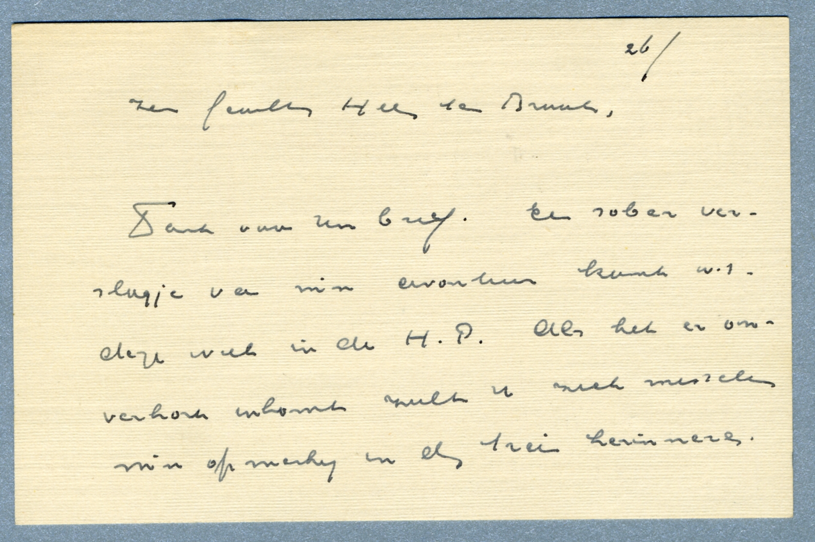 Dank voor uw brief. Een sober verslagje van m'n avontuur komt w.s. deze week in den H.P. Als het er onverkort inkomt zult U zich misschien m'n opmerking in den trein herinneren.